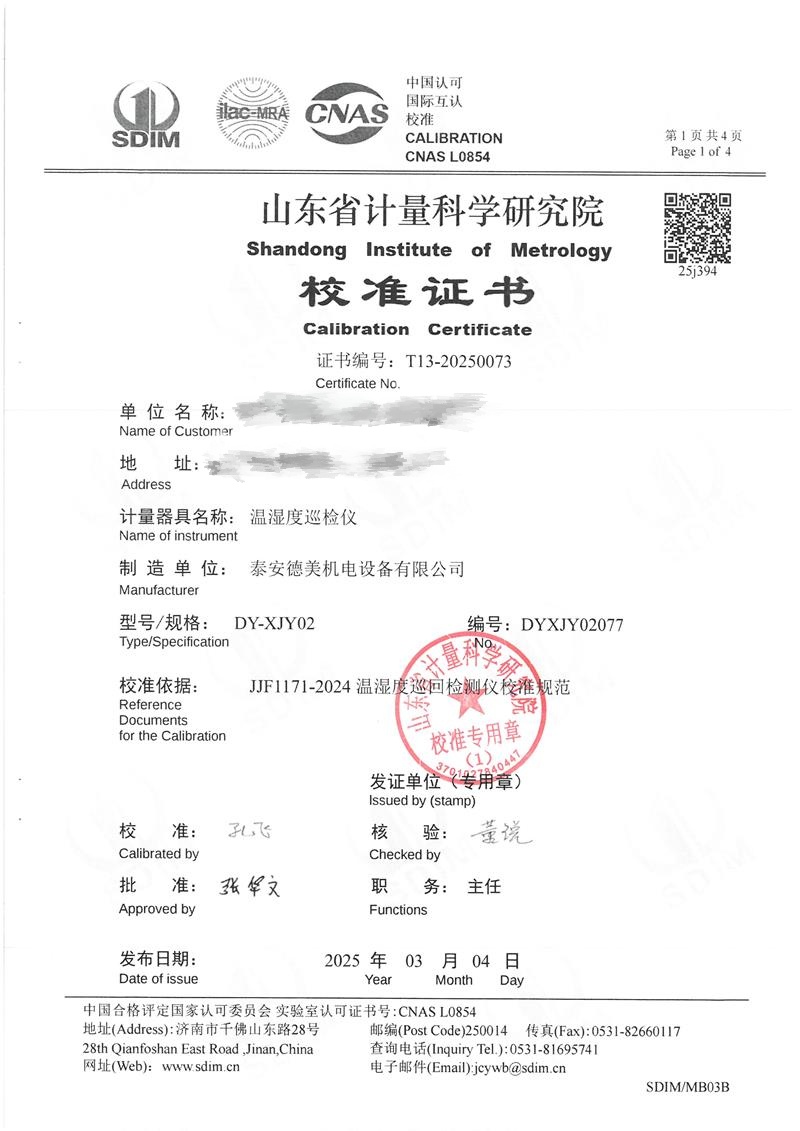溫濕度巡檢儀校準證書 2025-3-8 本文被閱讀 3413 次