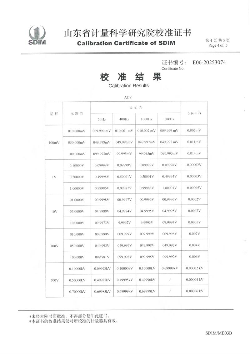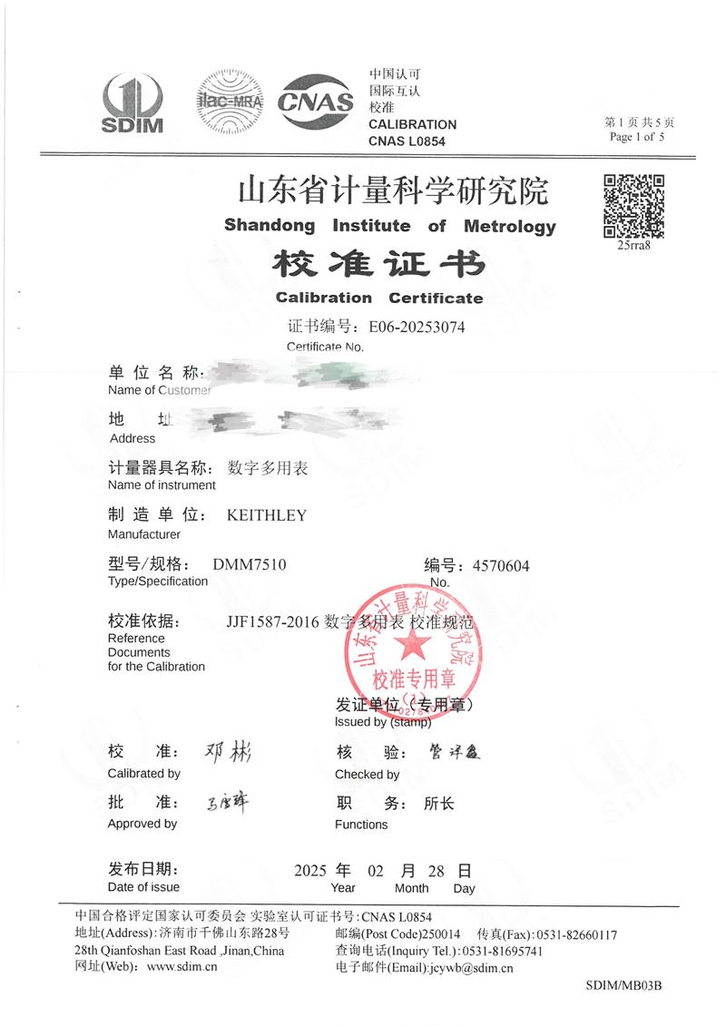 數(shù)字多用表校準(zhǔn)證書 2025-3-8 本文被閱讀 3727 次