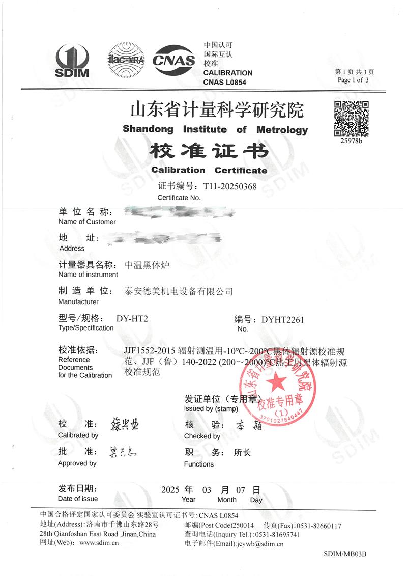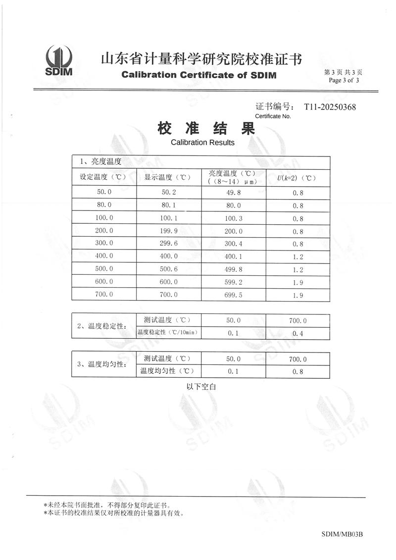 中溫黑體爐(50~700℃)校準證書 2025-3-12 本文被閱讀 4854 次