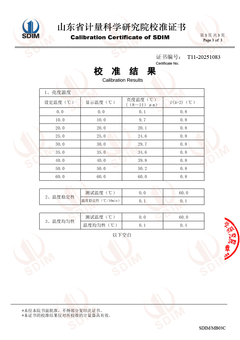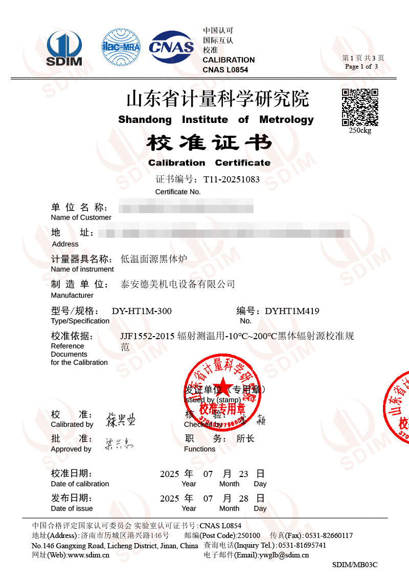 低溫面源黑體爐(0-60℃)校準(zhǔn)證書 2025-7-28 本文被閱讀 2377 次