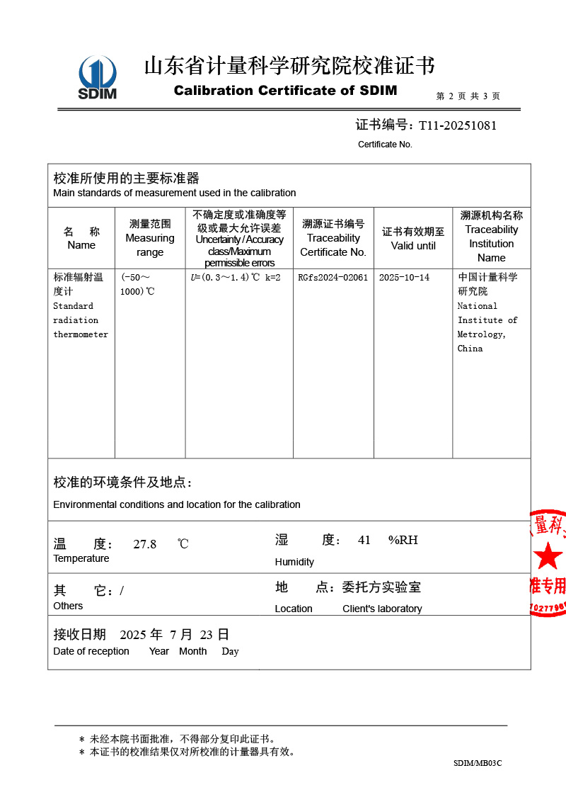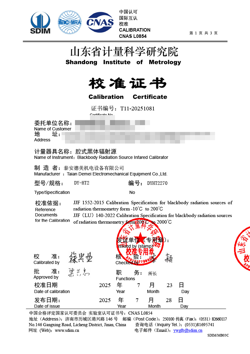 腔式黑體輻射源(室溫+5-400℃)校準(zhǔn)證書(shū) 2025-7-29 本文被閱讀 2201 次