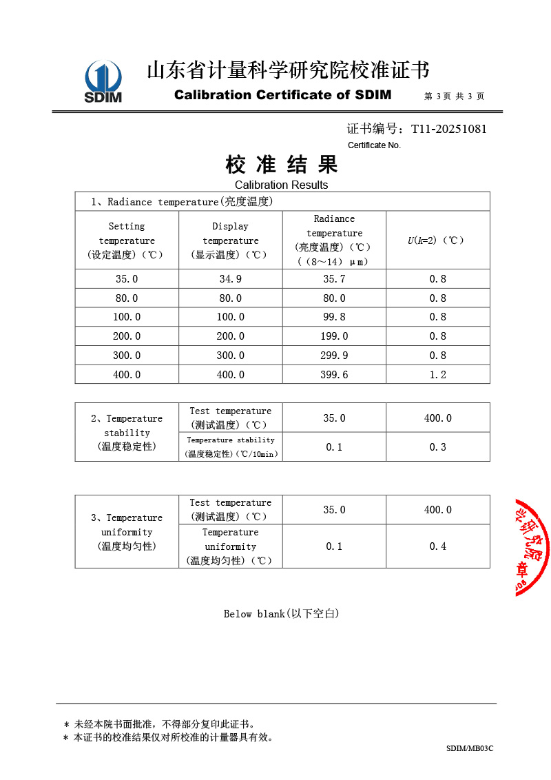 腔式黑體輻射源(室溫+5-400℃)校準(zhǔn)證書(shū)