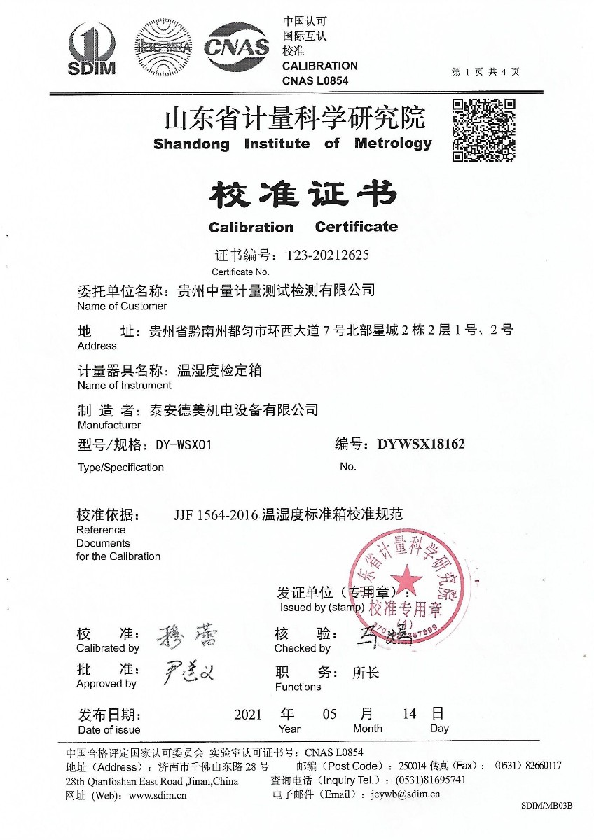 貴州中量計(jì)量測(cè)試檢測(cè)有限公司-溫濕度檢定箱 2021-5-22 本文被閱讀 14907 次