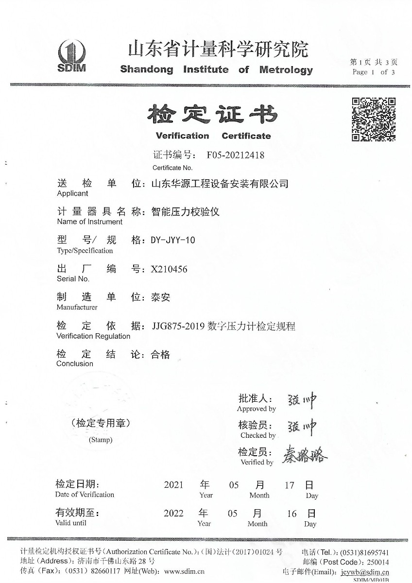 山東華源工程設(shè)備安裝有限公司-智能壓力校驗(yàn)儀X210456 2021-5-27 本文被閱讀 13754 次