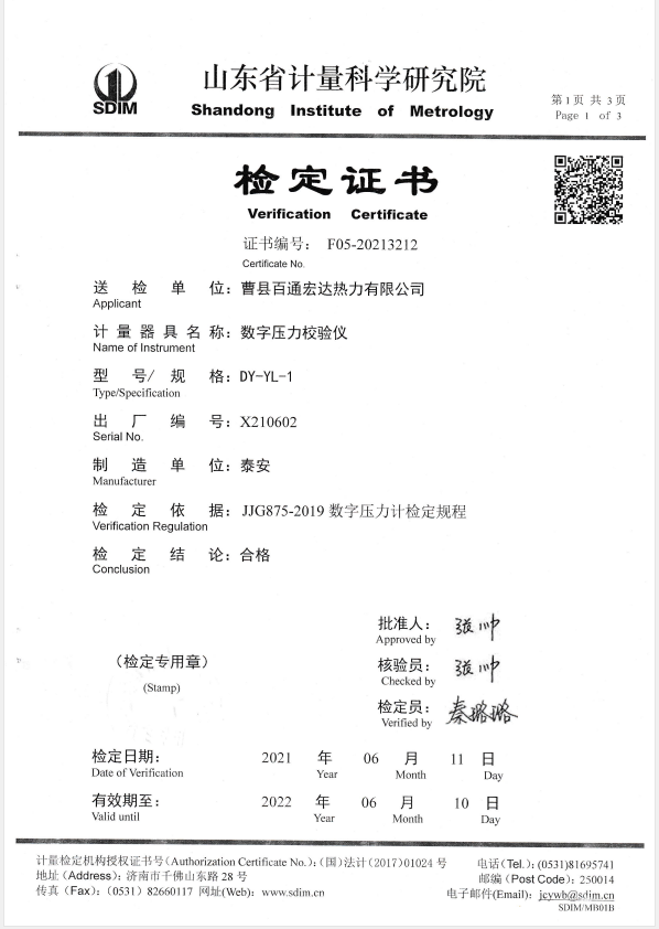曹縣百通宏達熱力有限公司-數(shù)字壓力校驗儀 2021-6-23 本文被閱讀 15345 次