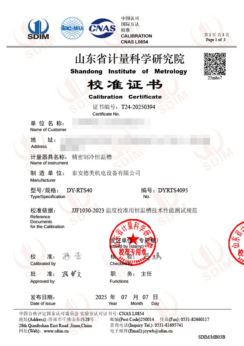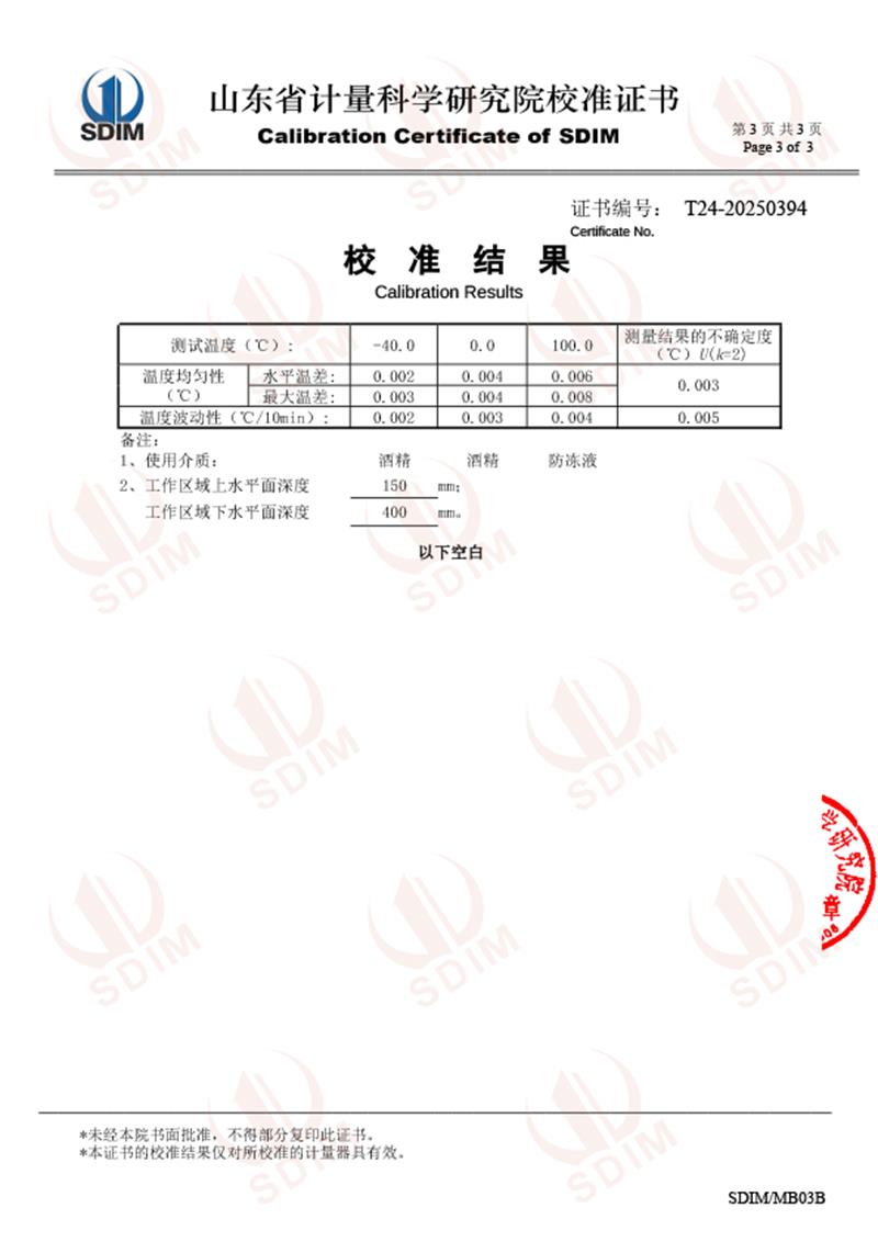制冷恒溫槽(-40-100℃)校準證書 2025-7-10 本文被閱讀 2807 次