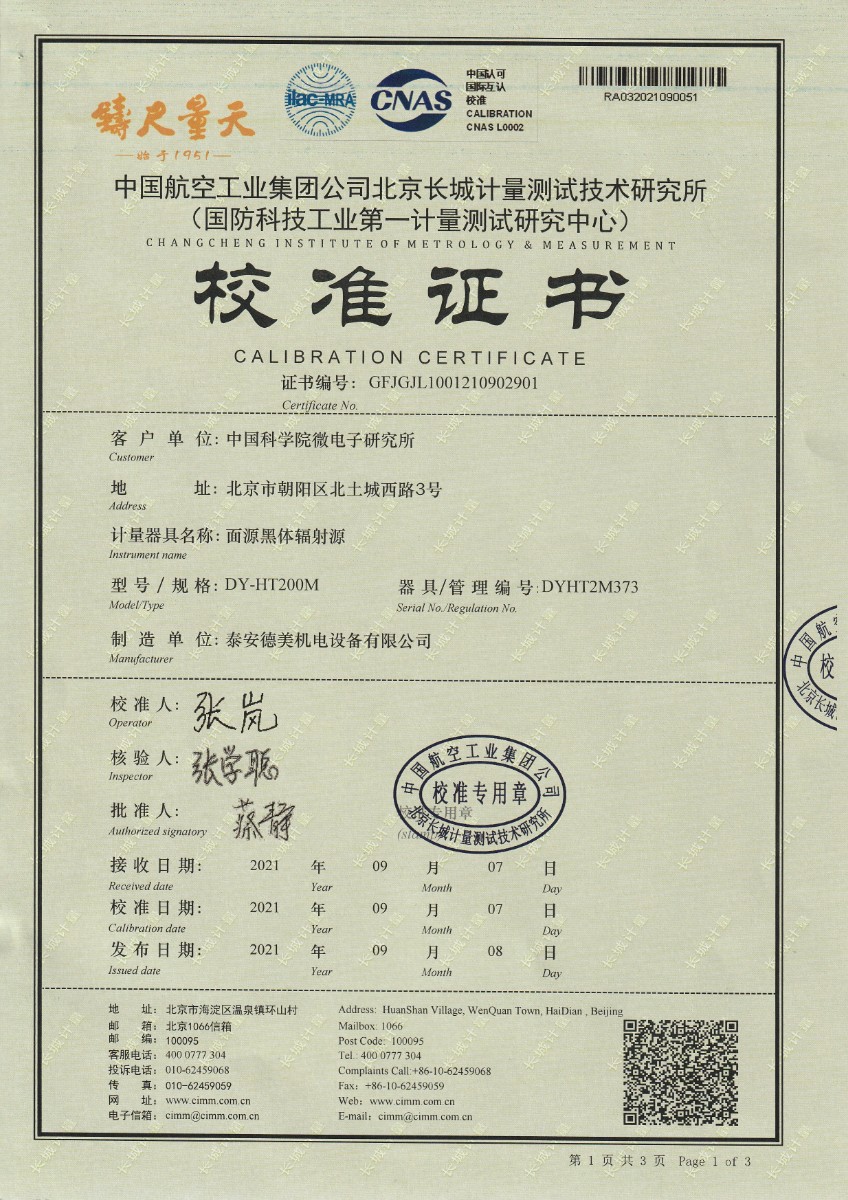 中國科學院微電子研究所-面源黑體輻射源 2021-9-16 本文被閱讀 16459 次