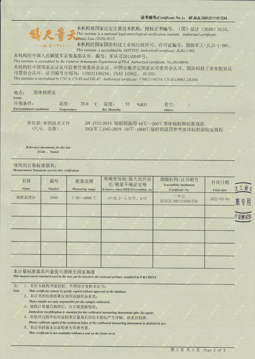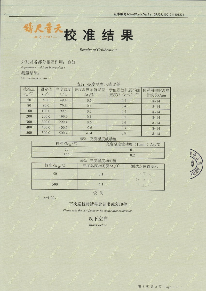 | 上一條:東營市安全工器具質(zhì)量檢測有限公司-黑體輻射源(-15-80℃) | 下一條:智能干體儀(六位半精度)校準(zhǔn)證書 |
