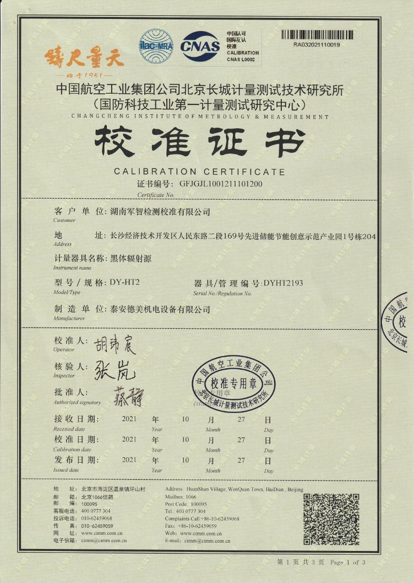 | 上一條:河北華科質(zhì)檢技術(shù)服務(wù)有限公司-黑體輻射源(DY-HT3) | 下一條:智能干體儀(六位半精度)校準(zhǔn)證書 |