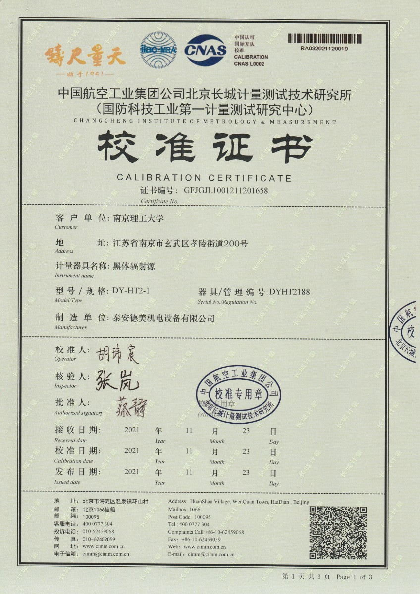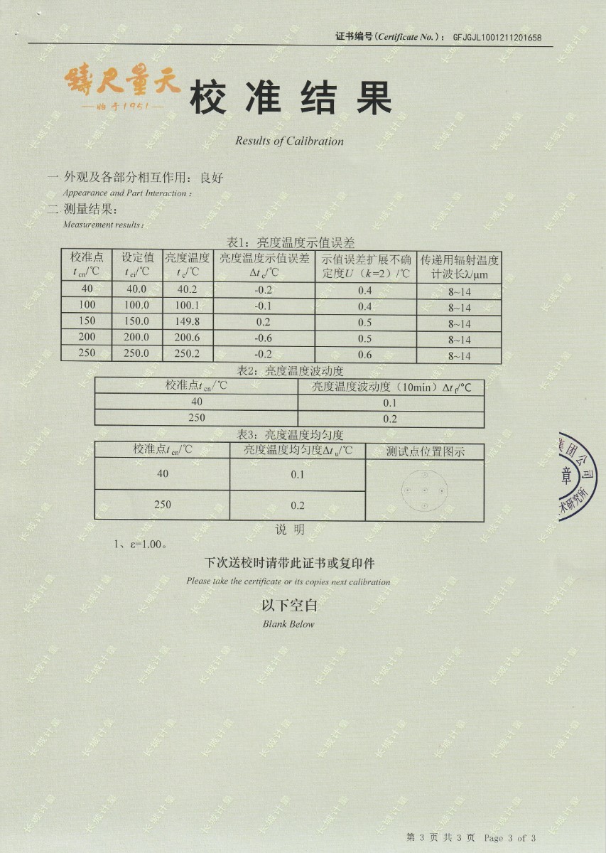 南京理工大學-黑體輻射源校準證書40-250℃ 2021-12-4 本文被閱讀 13727 次