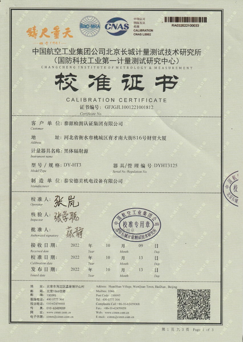泰源檢測認(rèn)證集團(tuán)有限公司-黑體輻射源 2022-10-31 本文被閱讀 14044 次