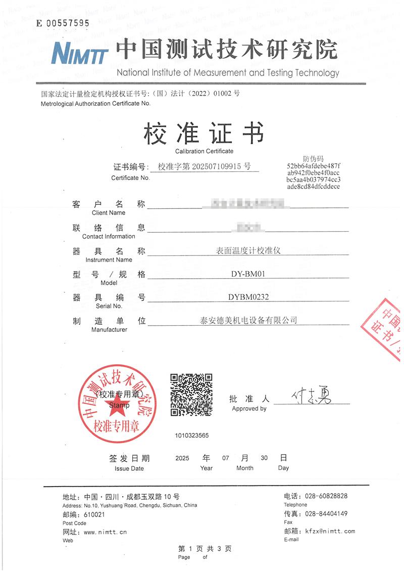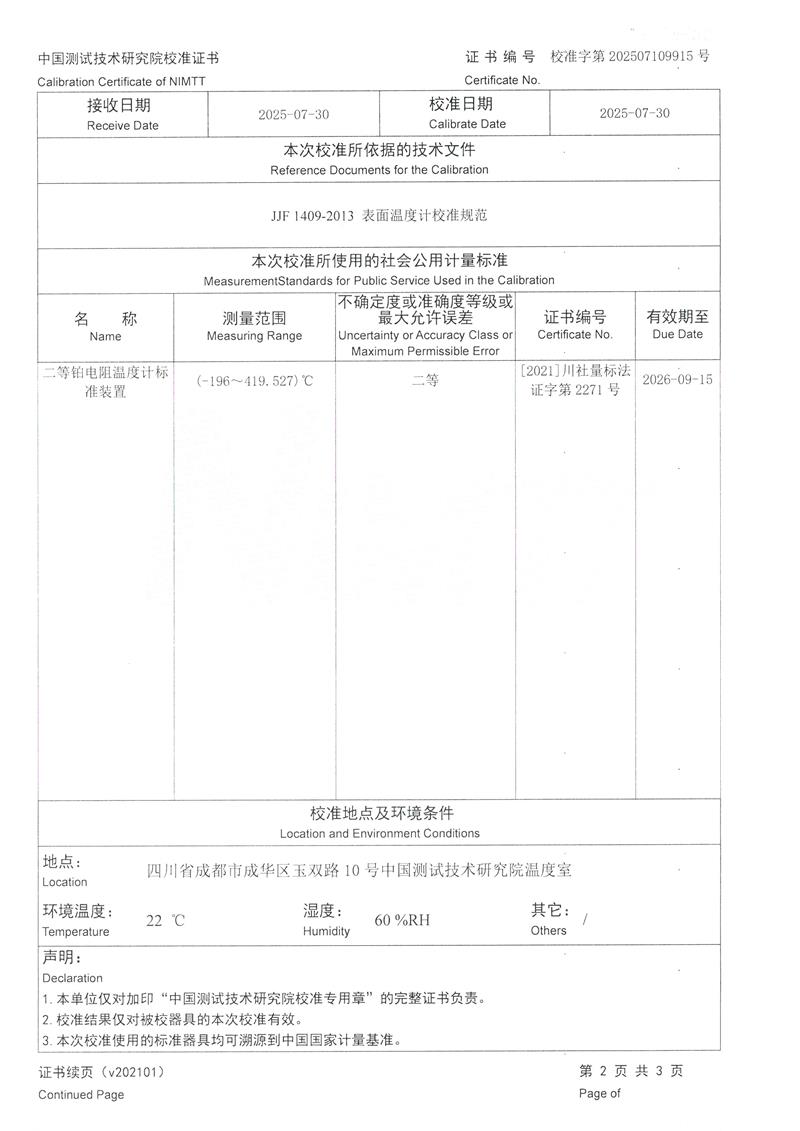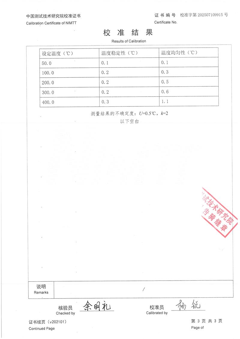 | 上一條:高精度低溫黑體(-10-100℃)校準(zhǔn)證書 | 下一條:智能干體儀(六位半精度)校準(zhǔn)證書 |