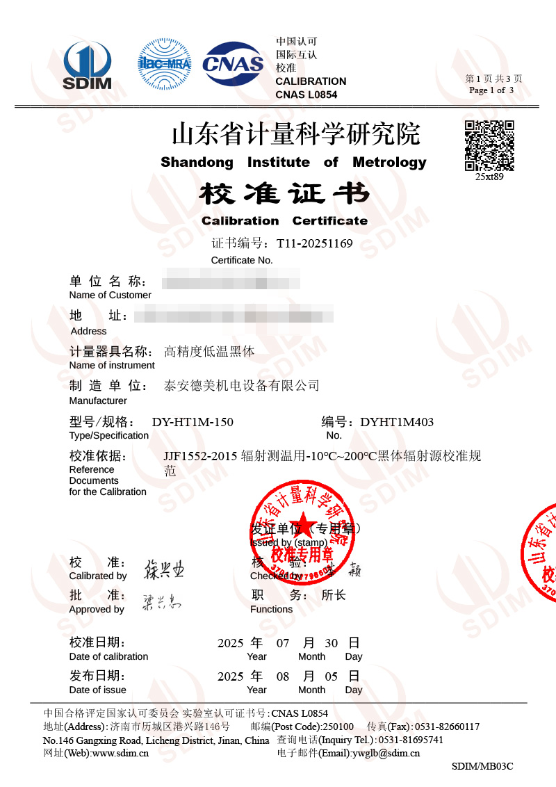 高精度低溫黑體(-10-100℃)校準證書 2025-8-6 本文被閱讀 2755 次