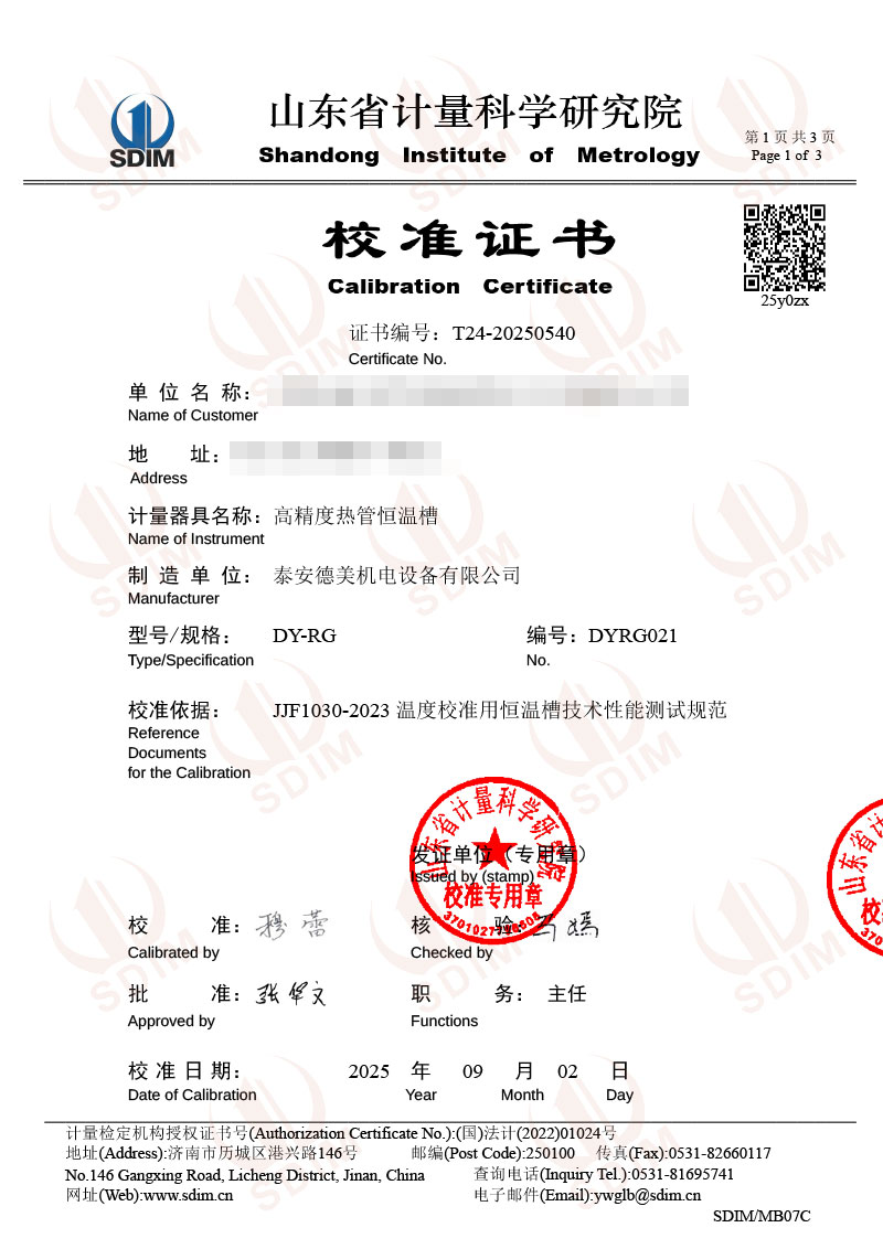 高精度熱管恒溫槽(50-300℃)校準(zhǔn)證書 2025-9-10 本文被閱讀 1353 次