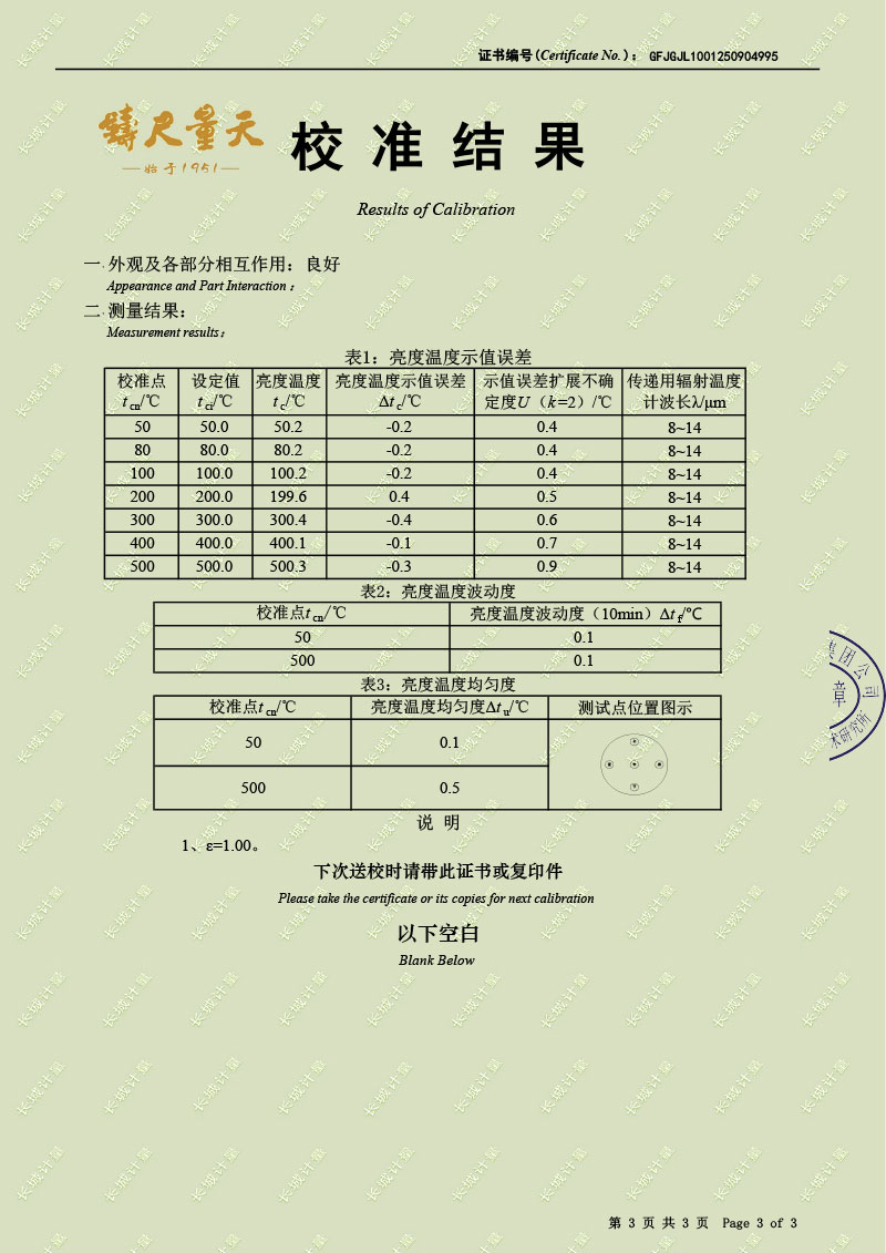 | 上一條:黑體輻射源(-15-80℃)校準(zhǔn)證書 | 下一條:智能干體儀(六位半精度)校準(zhǔn)證書 |