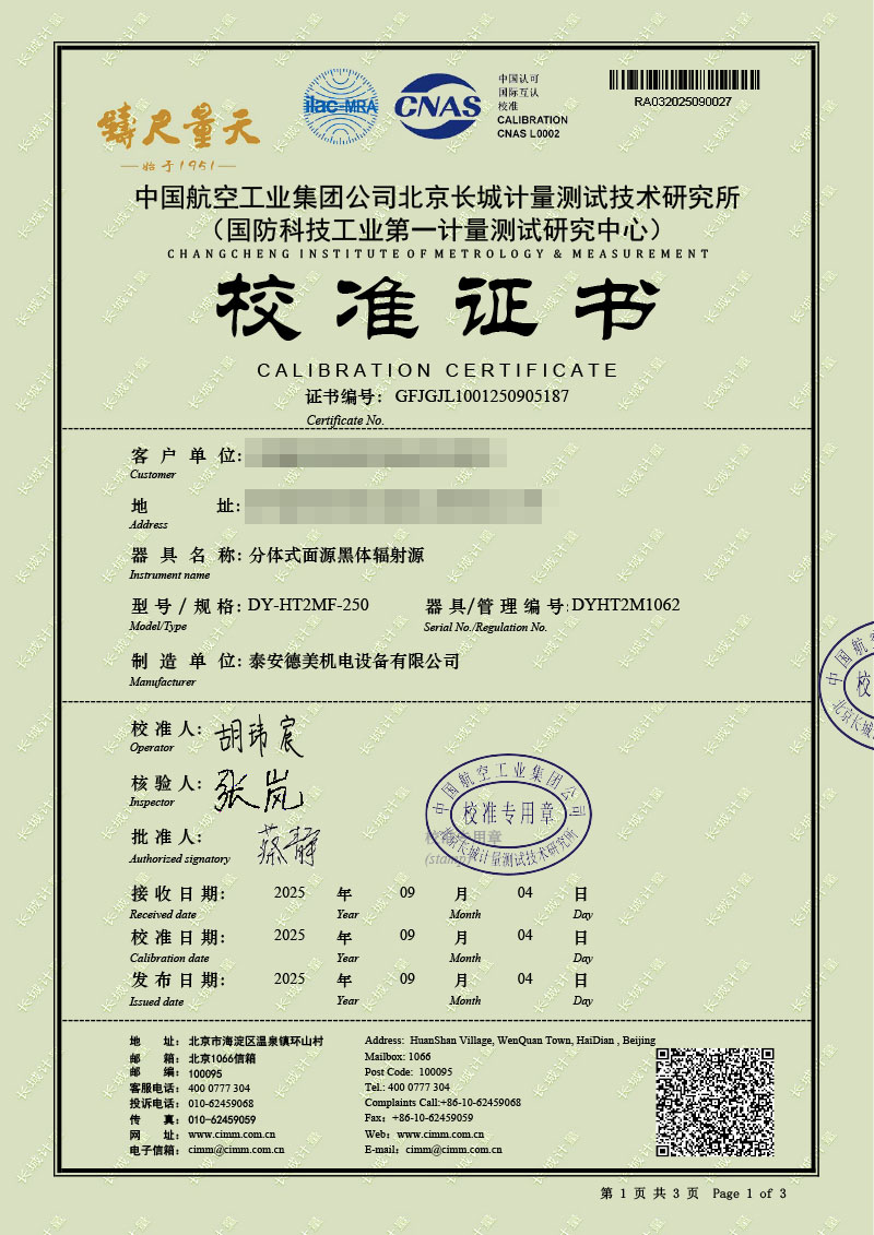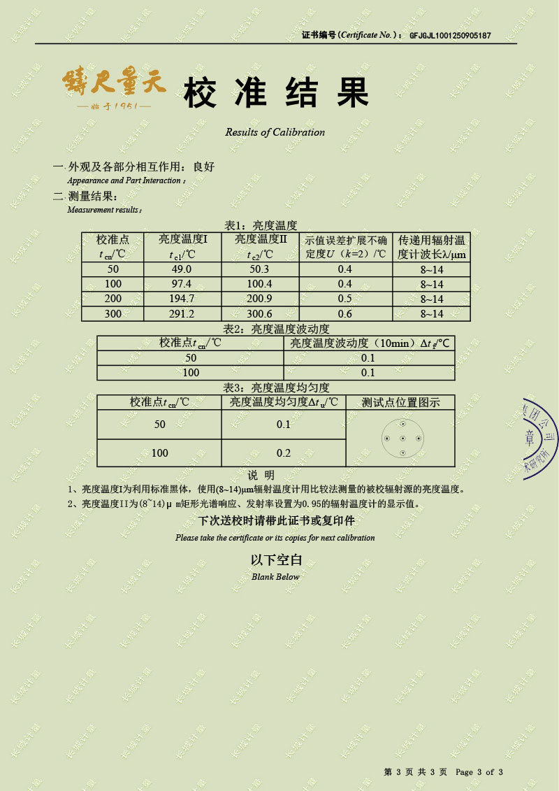 分體式面源黑體輻射源(室溫+5-300℃)校準(zhǔn)證書 2025-9-12 本文被閱讀 1612 次