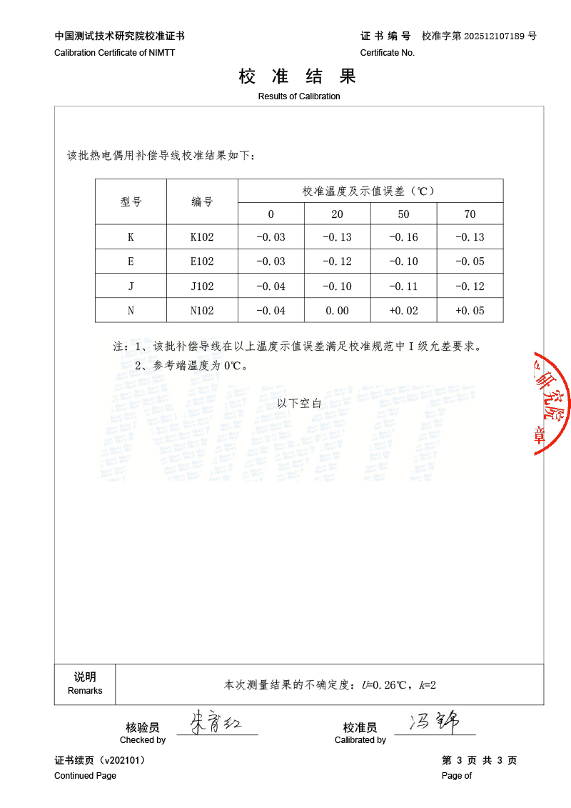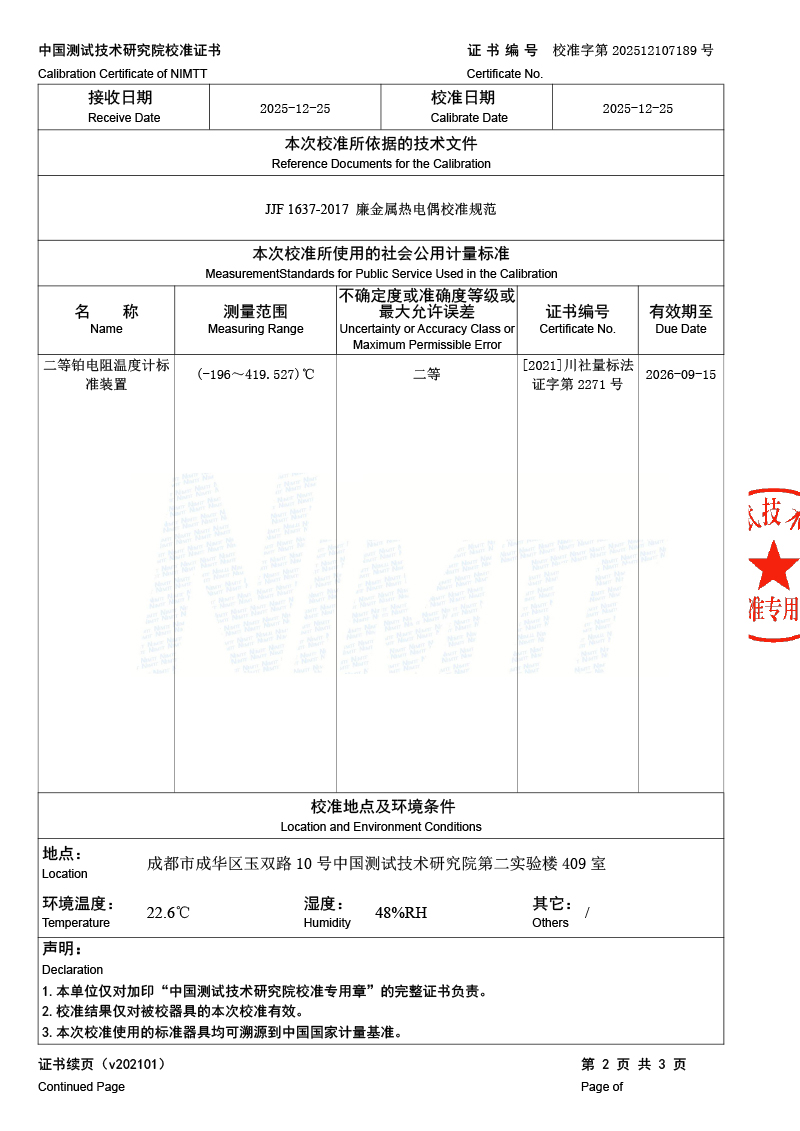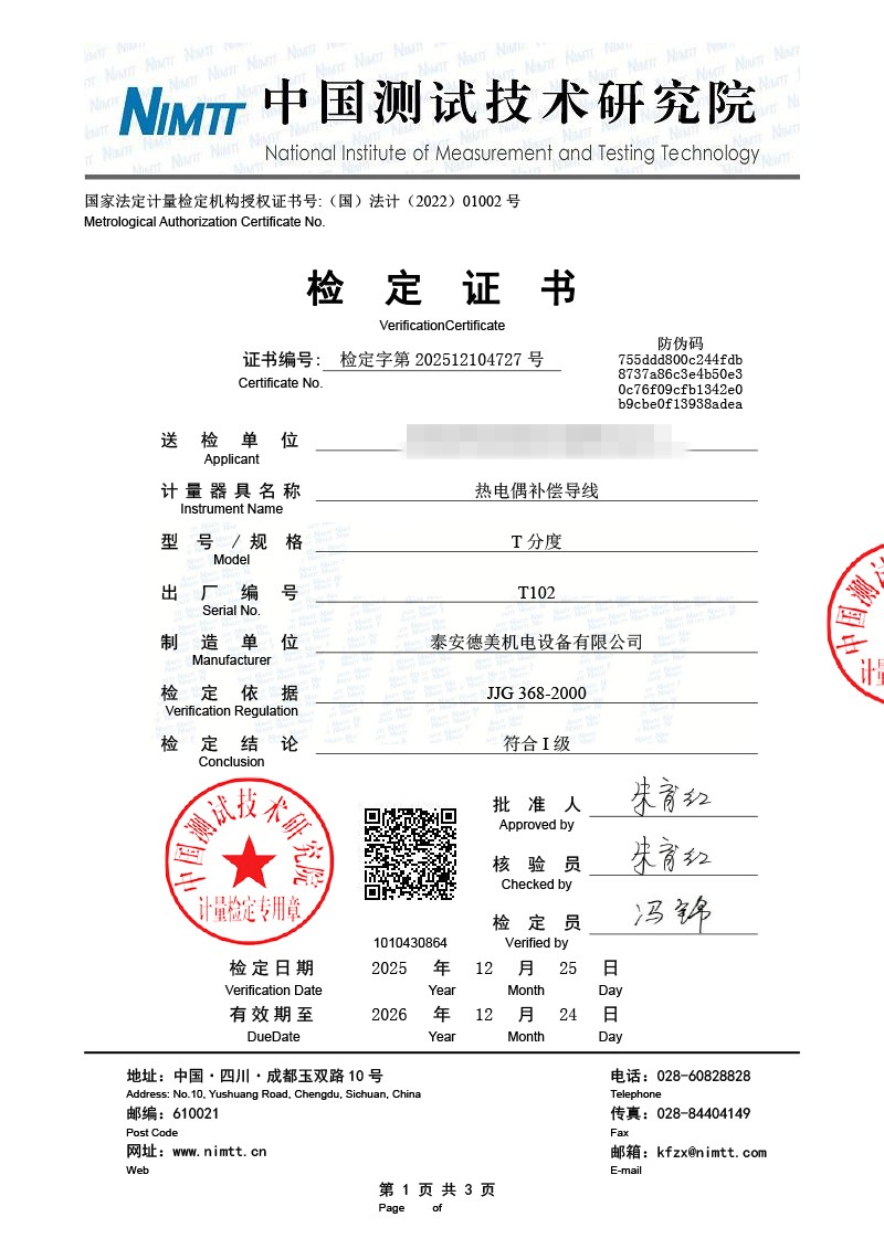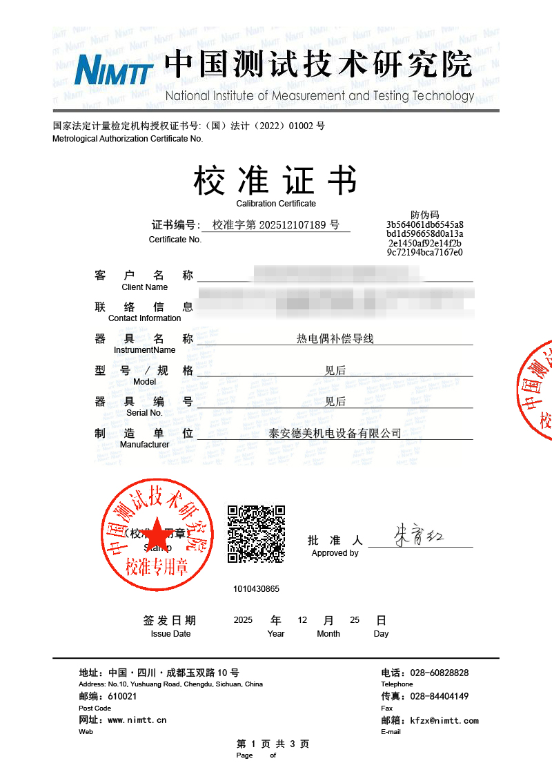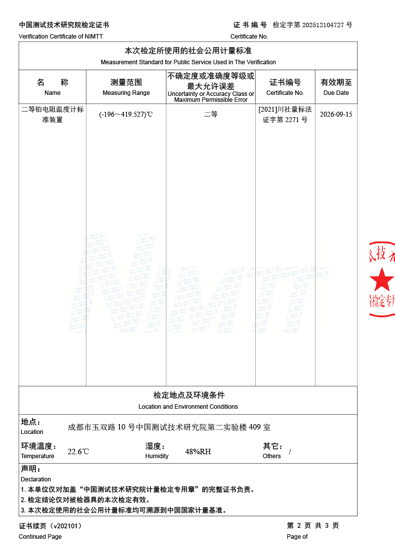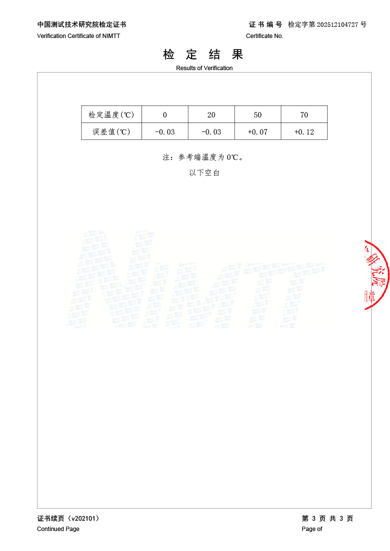 | 上一條:標(biāo)準(zhǔn)水銀溫度計檢定證書 | 下一條:溫度數(shù)據(jù)采集儀校準(zhǔn)證書 |