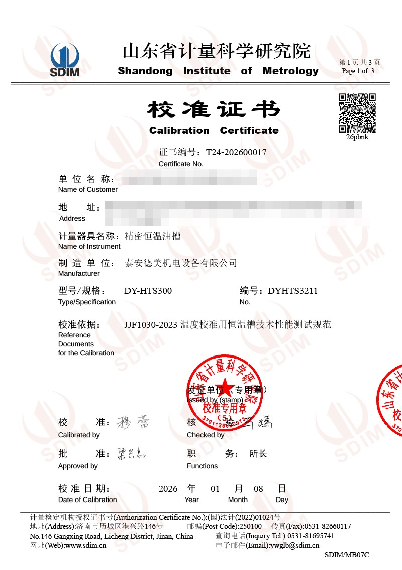 恒溫油槽校準(zhǔn)證書 2026-1-13 本文被閱讀 50 次
