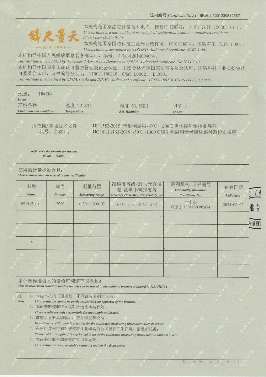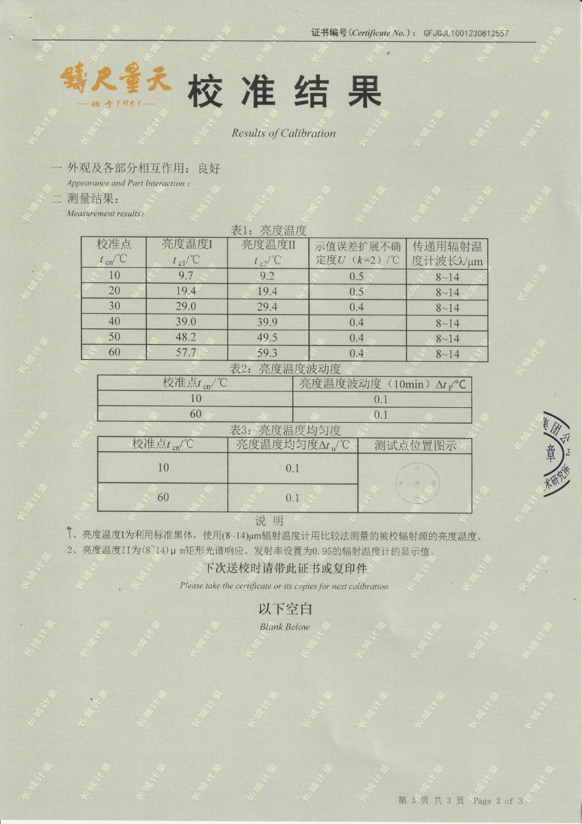 面源黑體爐DYHT1M141校準(zhǔn)證書 2023-9-20 本文被閱讀 8645 次