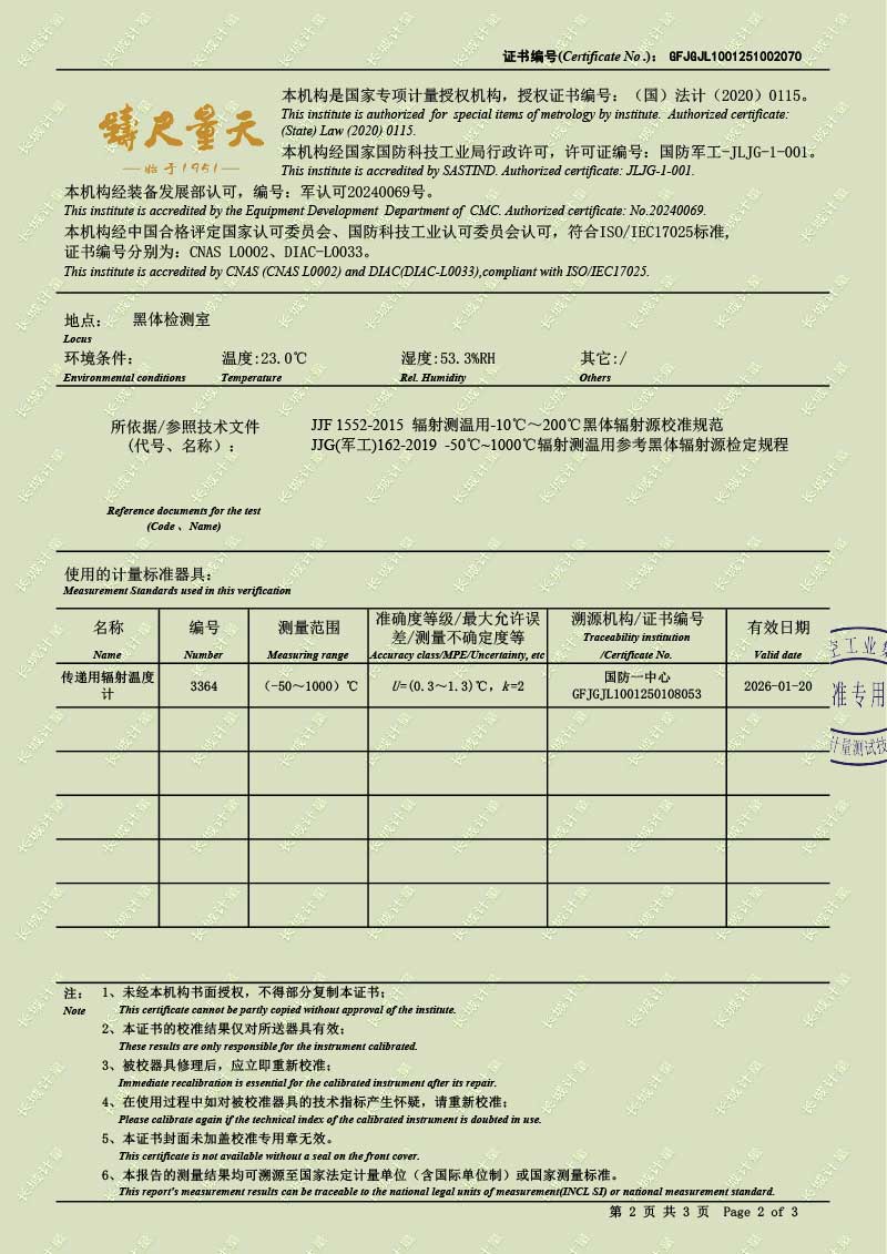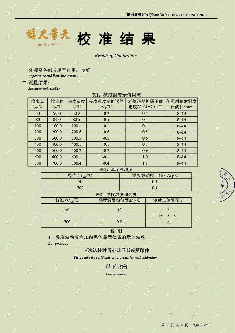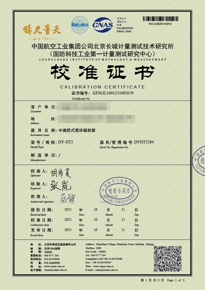 | 上一條:高溫腔式黑體輻射源(700-1600℃)校準(zhǔn)證書(shū) | 下一條:智能干體儀(六位半精度)校準(zhǔn)證書(shū) |