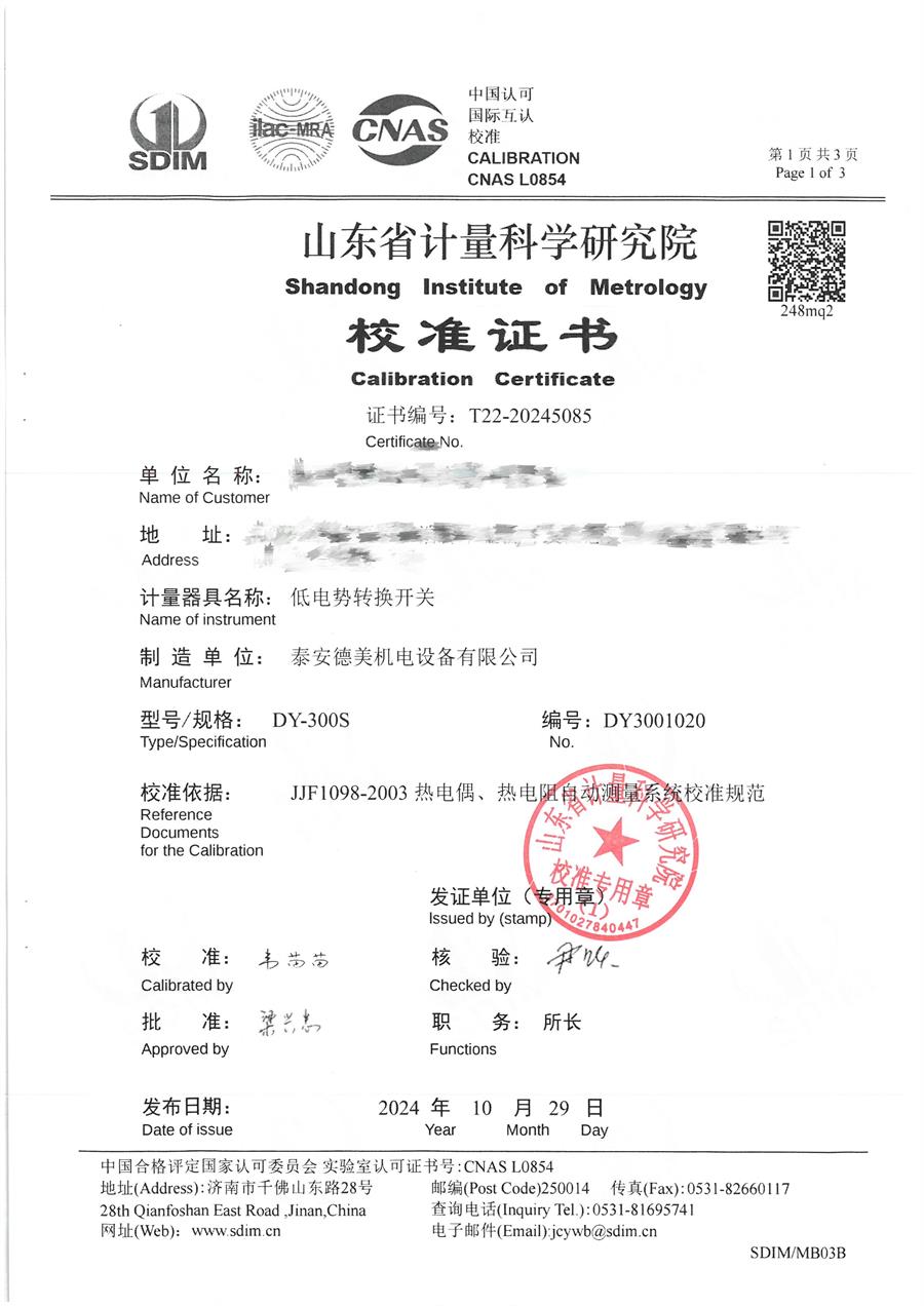 | 上一條:標(biāo)準(zhǔn)濕度發(fā)生器校準(zhǔn)證書 | 下一條:智能干體儀(六位半精度)校準(zhǔn)證書 |