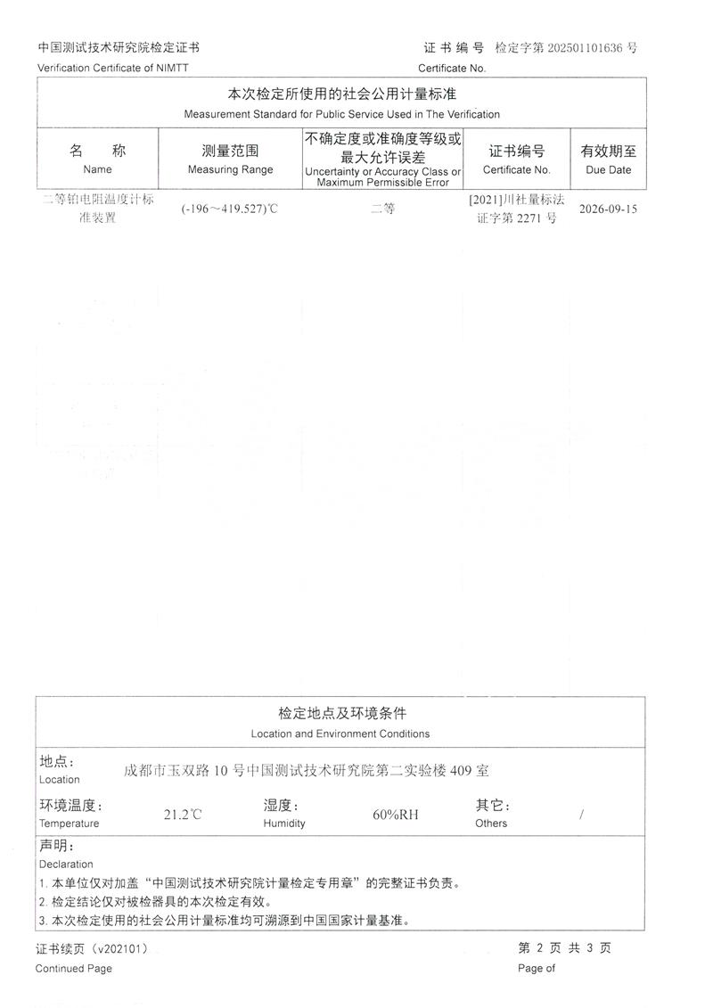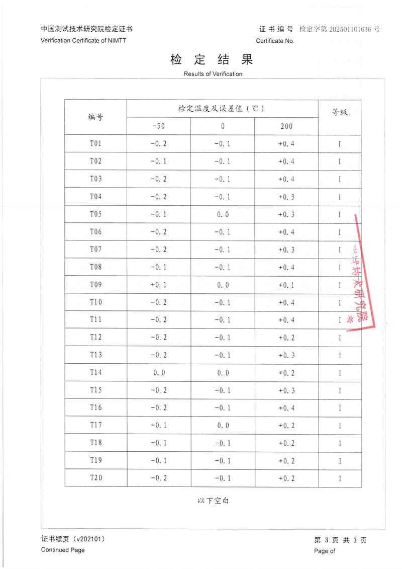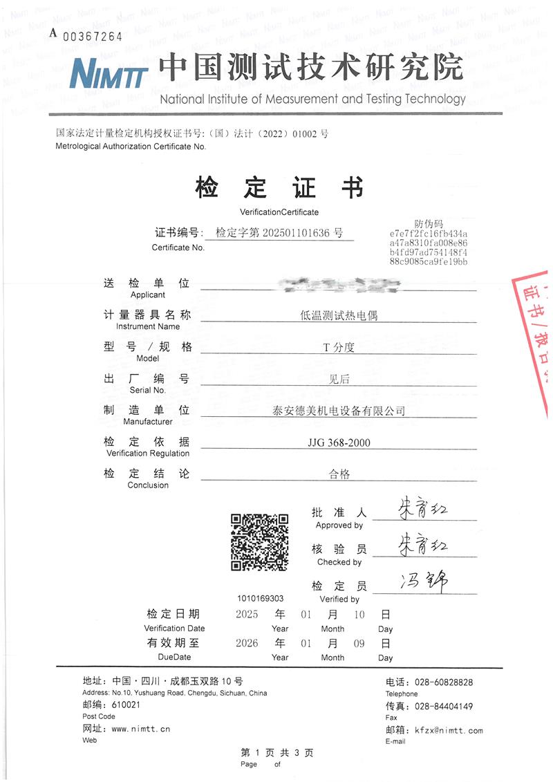 (T型)低溫測試熱電偶檢定證書 2025-1-13 本文被閱讀 5518 次