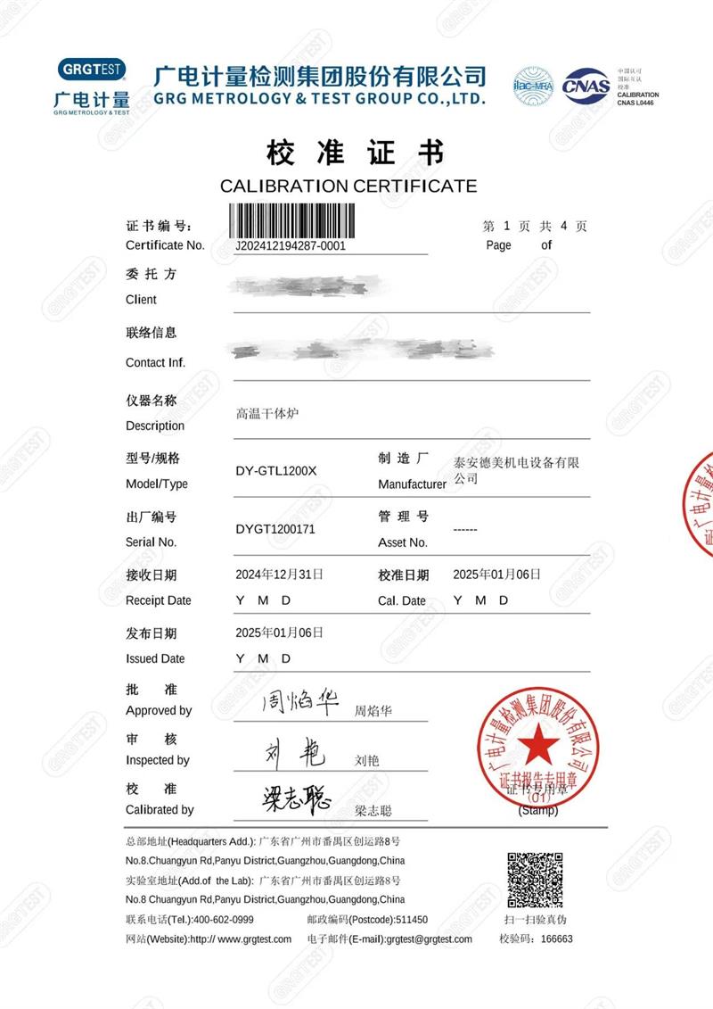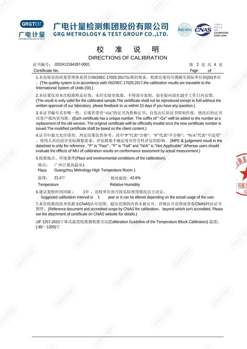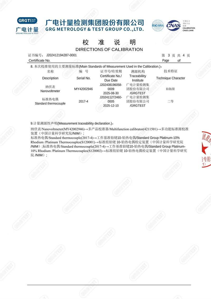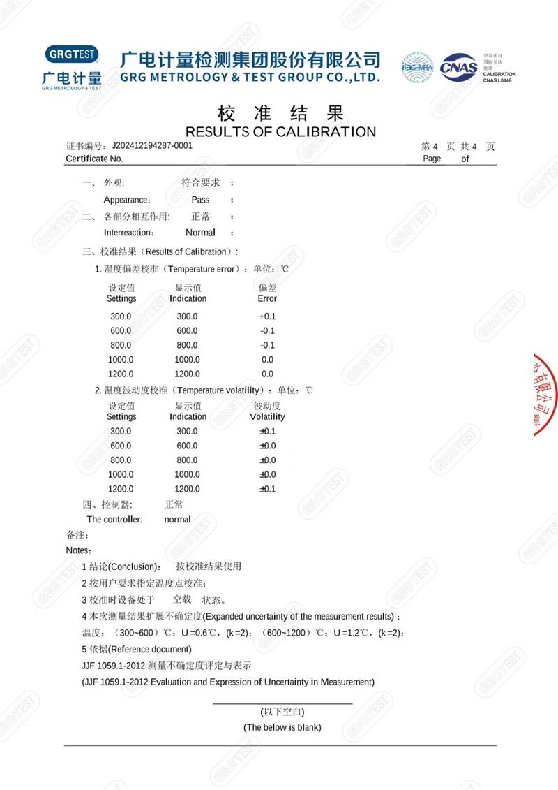 高溫干體爐(300-1200℃)校準(zhǔn)證書 2025-1-13 本文被閱讀 6030 次