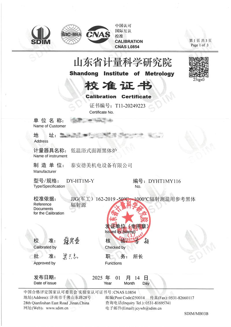 | 上一條:中溫干體爐(室溫+5~400℃)校準(zhǔn)證書(shū) | 下一條:智能干體儀(六位半精度)校準(zhǔn)證書(shū) |