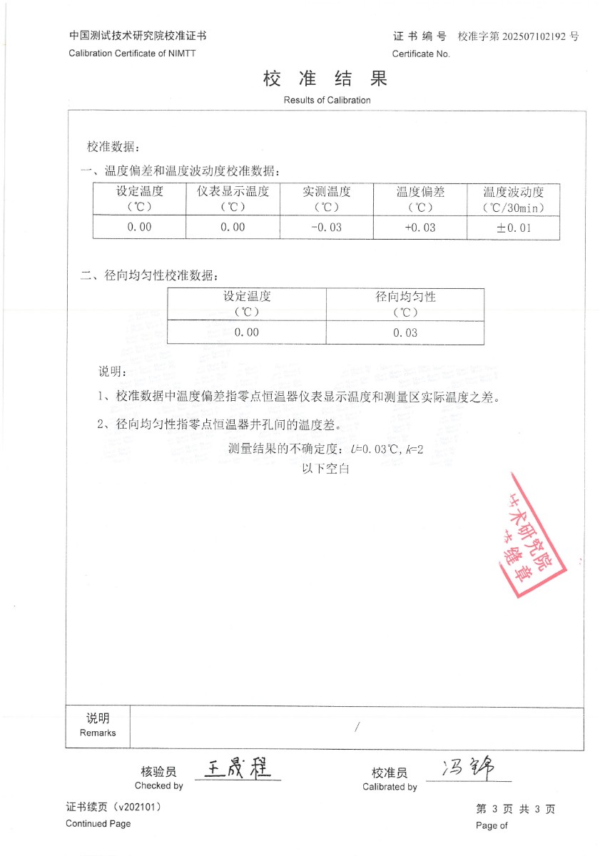 零點(diǎn)恒溫器校準(zhǔn)證書(shū)