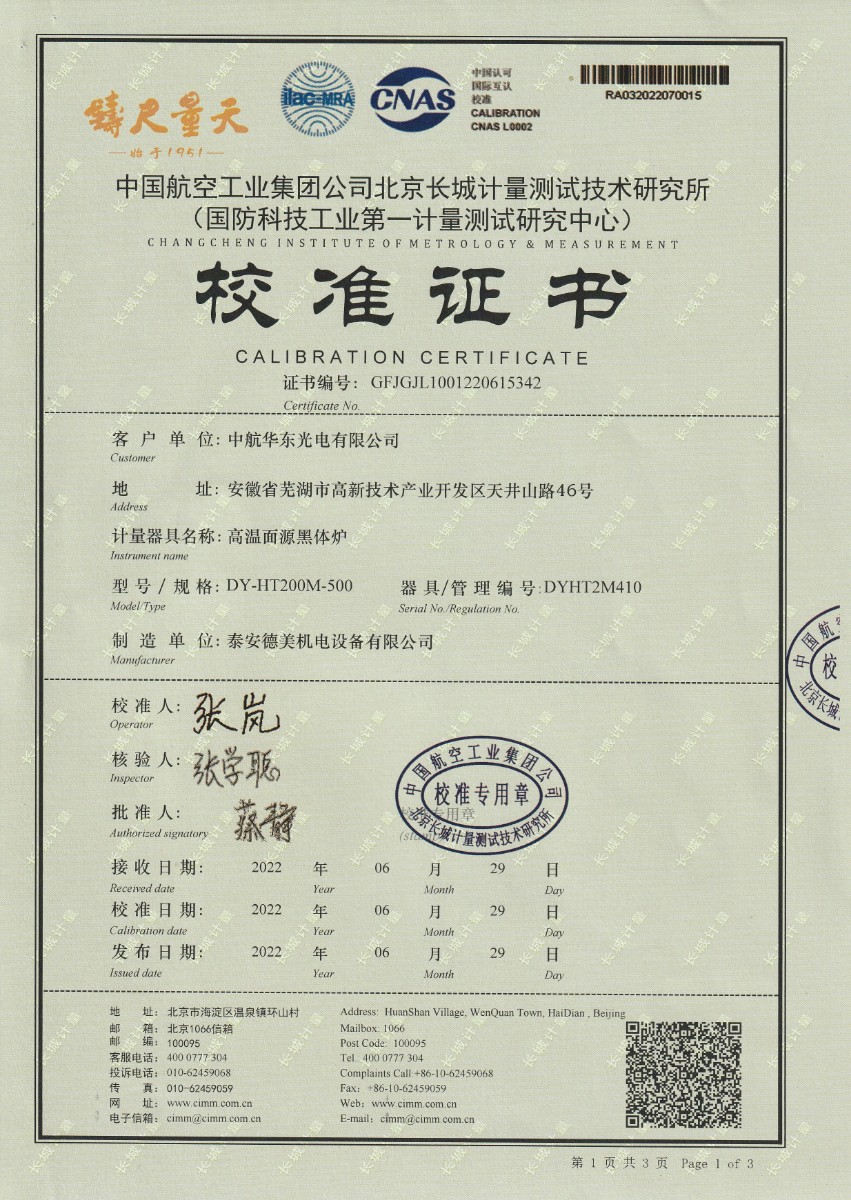 中航華東光電有限公司-高溫面源黑體爐 2022-7-13 本文被閱讀 13261 次