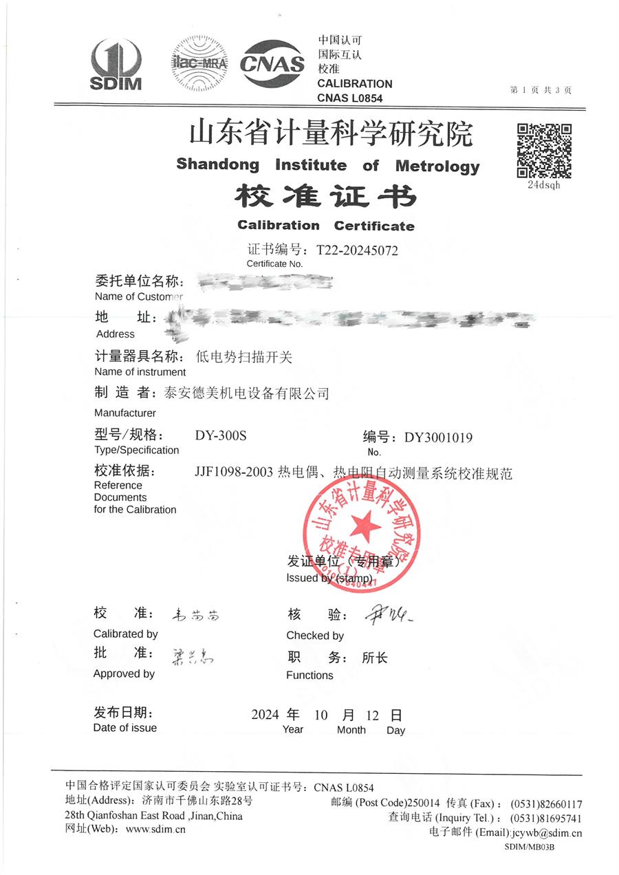 | 上一條:DY-HT2M-70小尺寸高精度面源黑體爐(輻射面70mm) | 下一條:智能干體儀(六位半精度)校準(zhǔn)證書 |