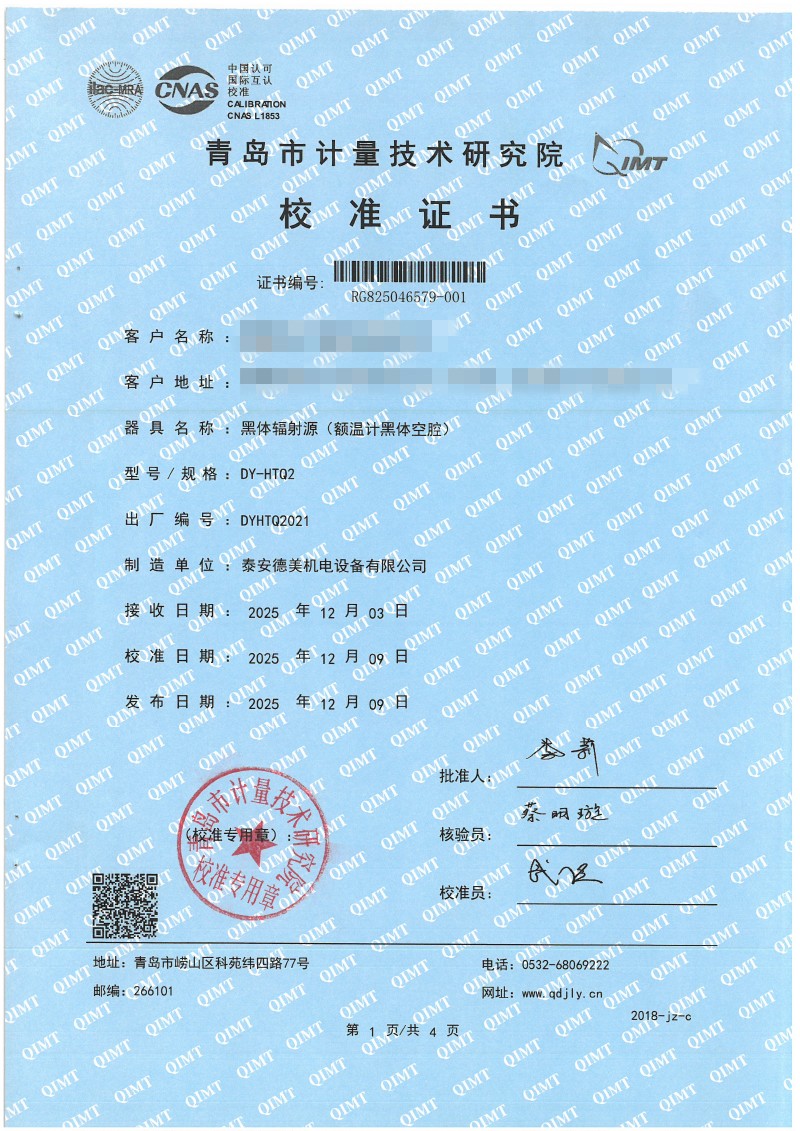 額溫計黑體空腔校準證書 2025-12-18 本文被閱讀 655 次