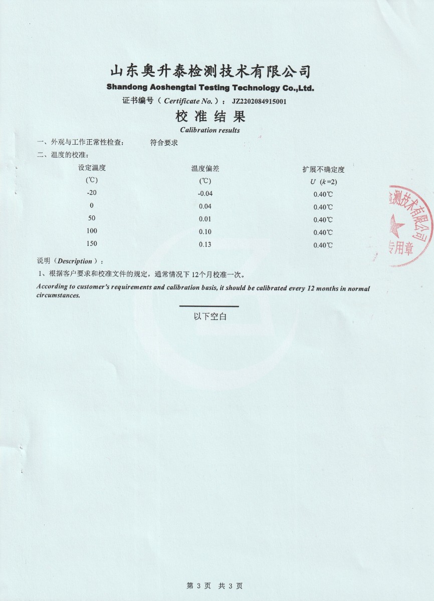 | 上一條:遼寧昆侖儀器儀表檢驗檢測有限公司-高精度數(shù)字溫度計 | 下一條:智能干體儀(六位半精度)校準(zhǔn)證書 |