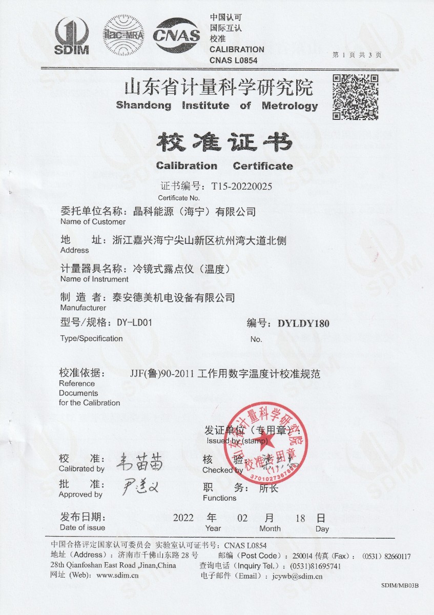 | 上一條:河北京車軌道交通車輛裝備有限公司-冷鏡式露點儀檢定證書 | 下一條:智能干體儀(六位半精度)校準證書 |