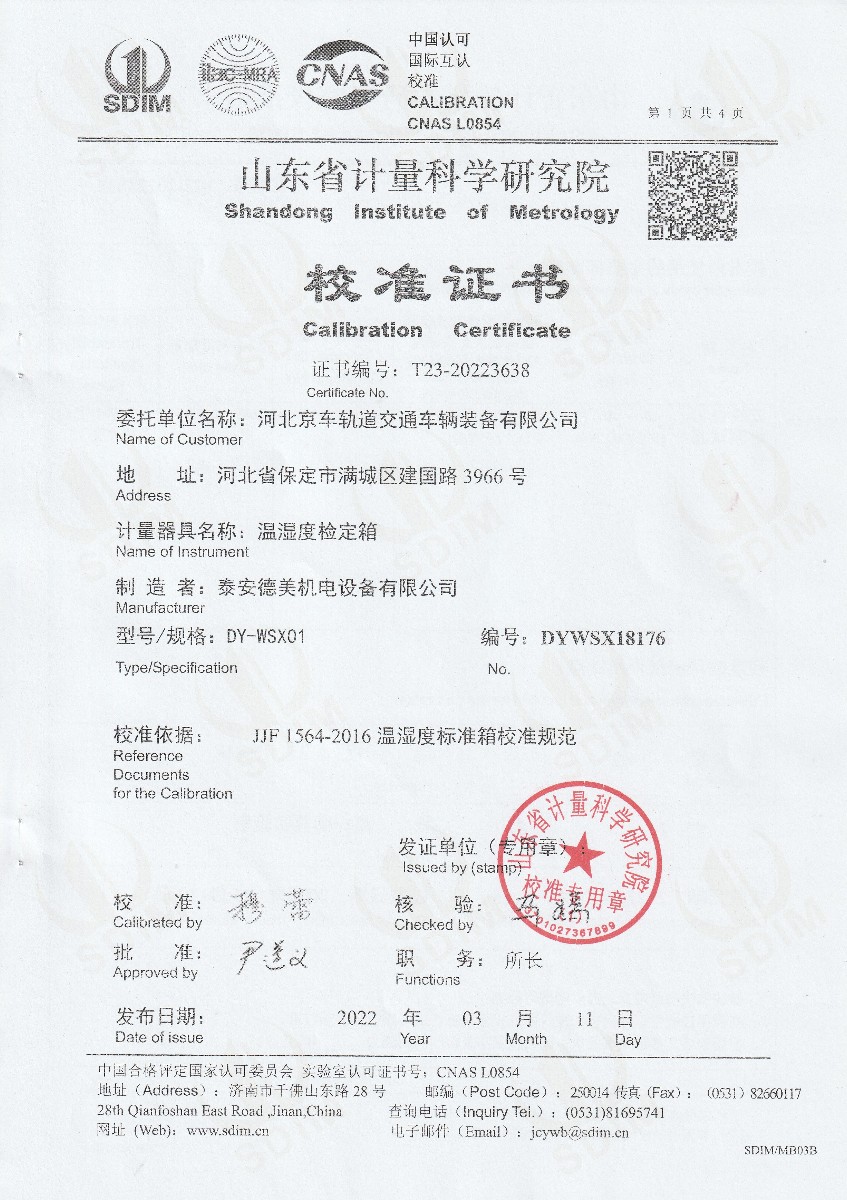 河北京車軌道交通車輛裝備有限公司-溫濕度檢定箱 2022-3-18 本文被閱讀 13781 次
