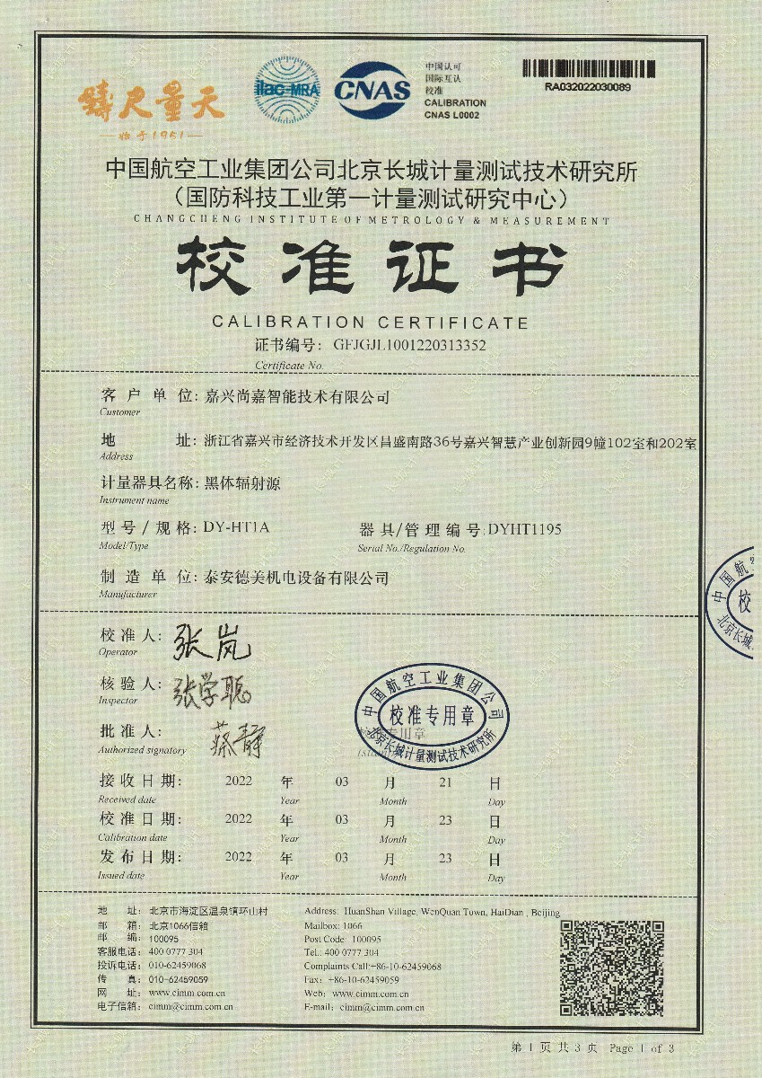 嘉興尚嘉智能技術(shù)有限公司-黑體輻射源(DY-HT1A) 2022-3-29 本文被閱讀 13179 次