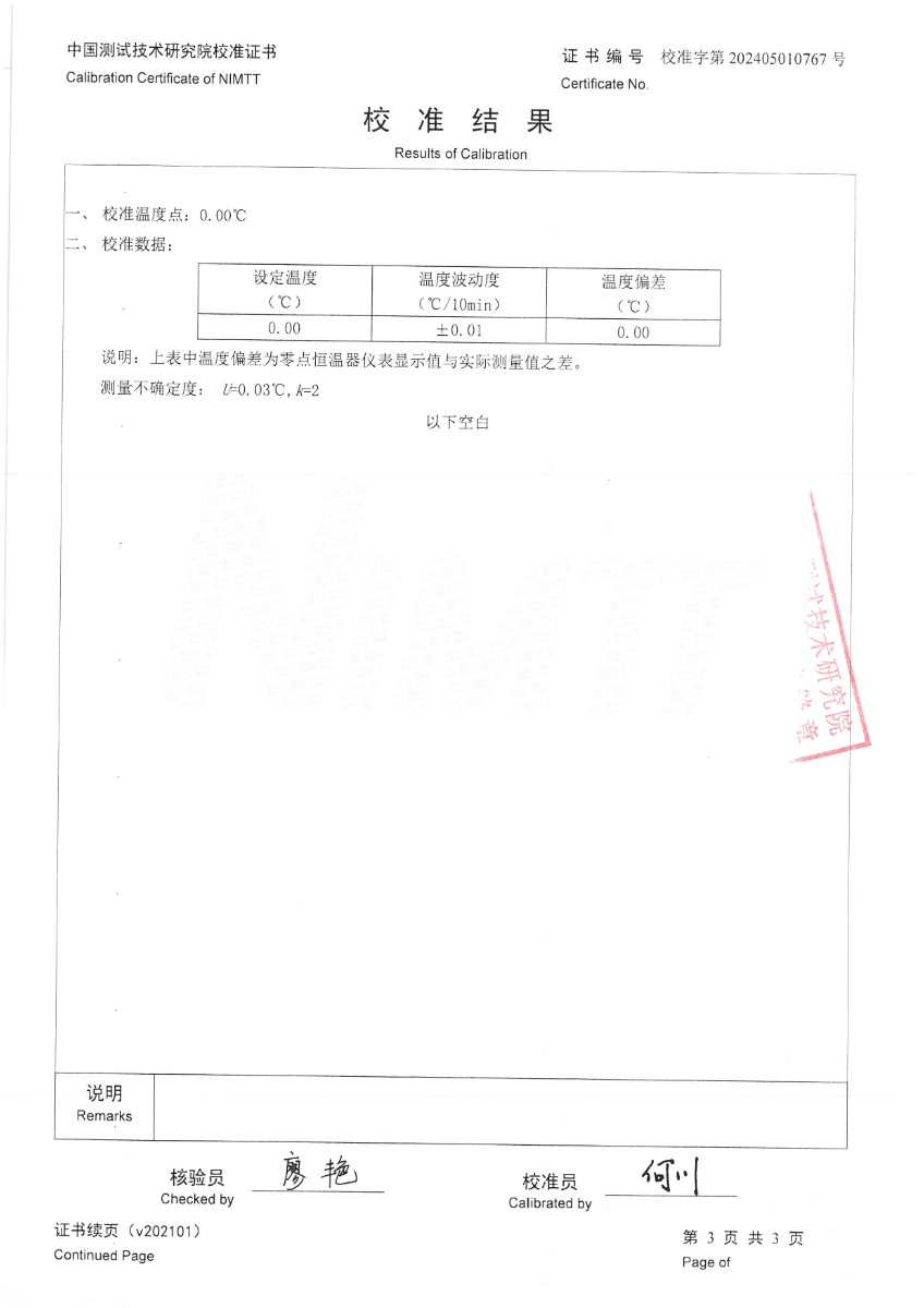 零點恒溫器校準(zhǔn)證書 2024-6-27 本文被閱讀 6468 次