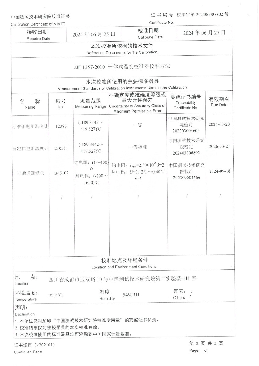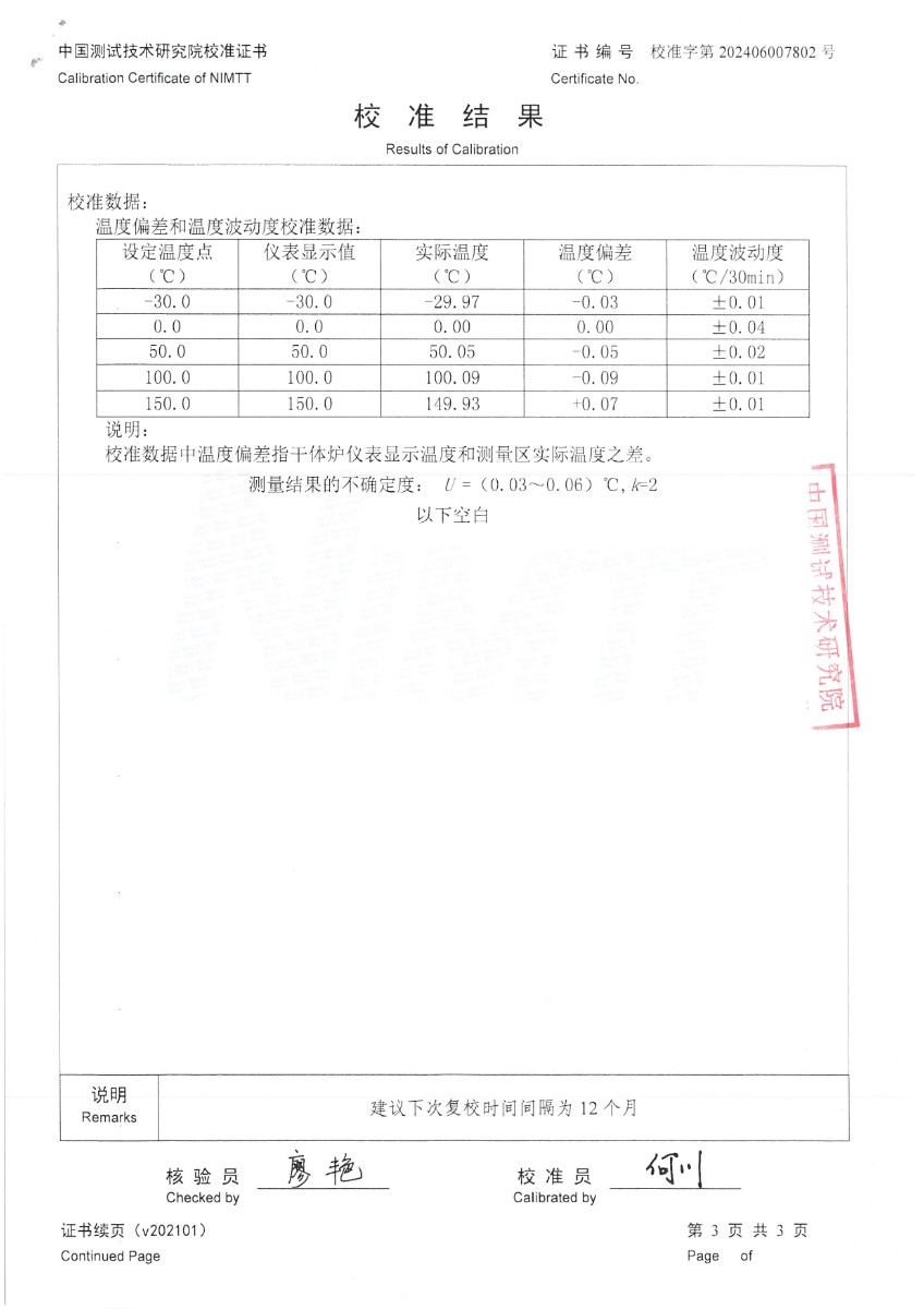 低溫干體爐(-30~150℃)校準(zhǔn)證書 2024-7-1 本文被閱讀 5850 次