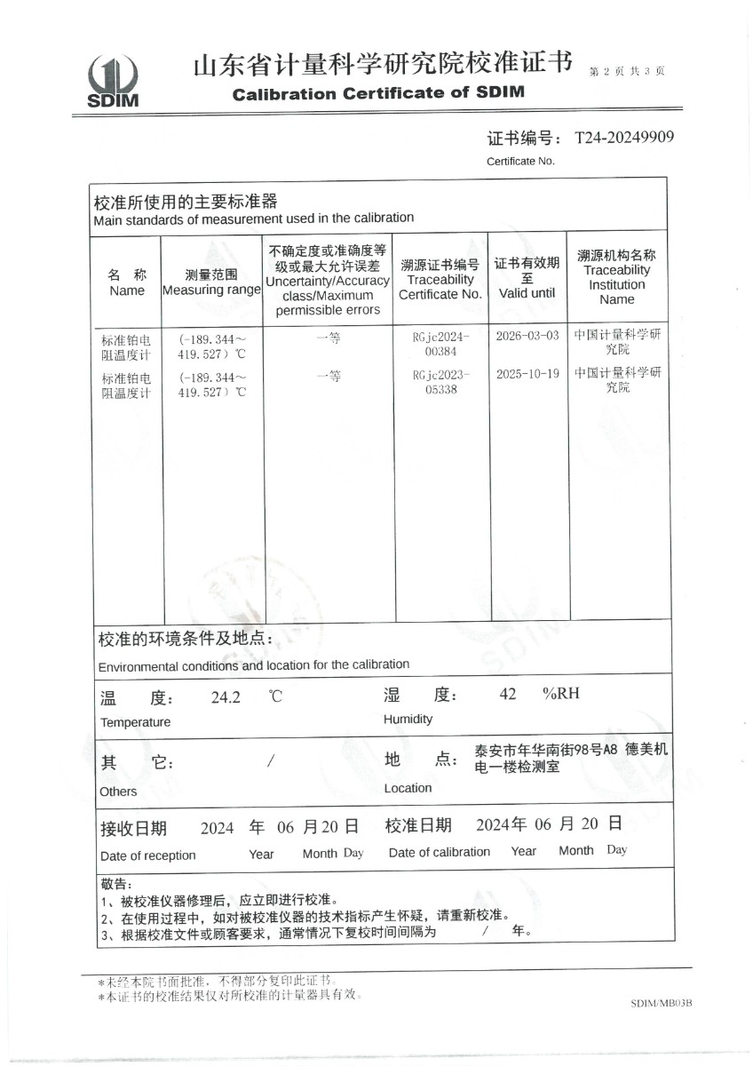 | 上一條:中溫干體爐(50~650℃)校準(zhǔn)證書 | 下一條:智能干體儀(六位半精度)校準(zhǔn)證書 |