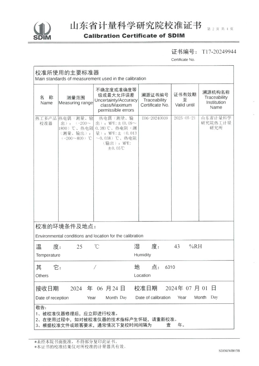 便攜式過(guò)程校驗(yàn)儀(-200~1800℃)校準(zhǔn)證書(shū) 2024-7-5 本文被閱讀 6184 次