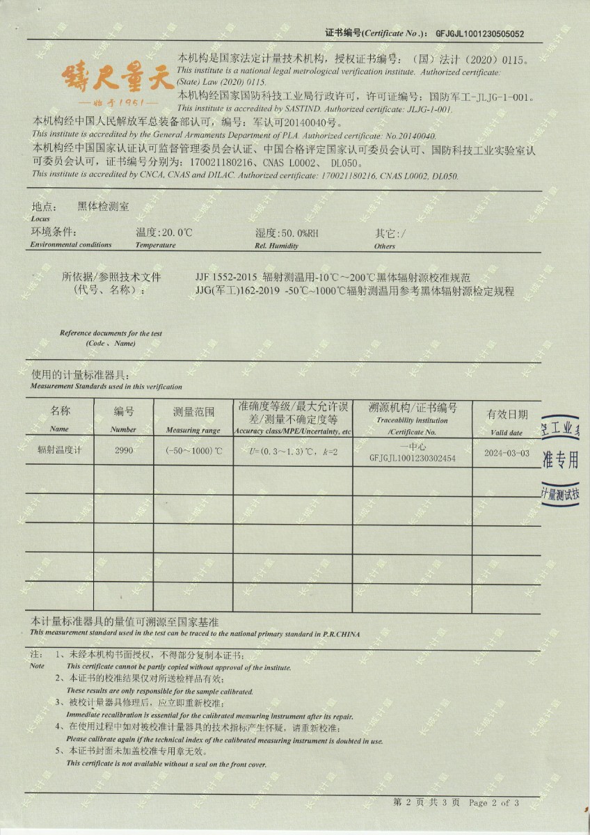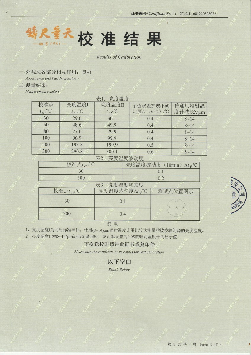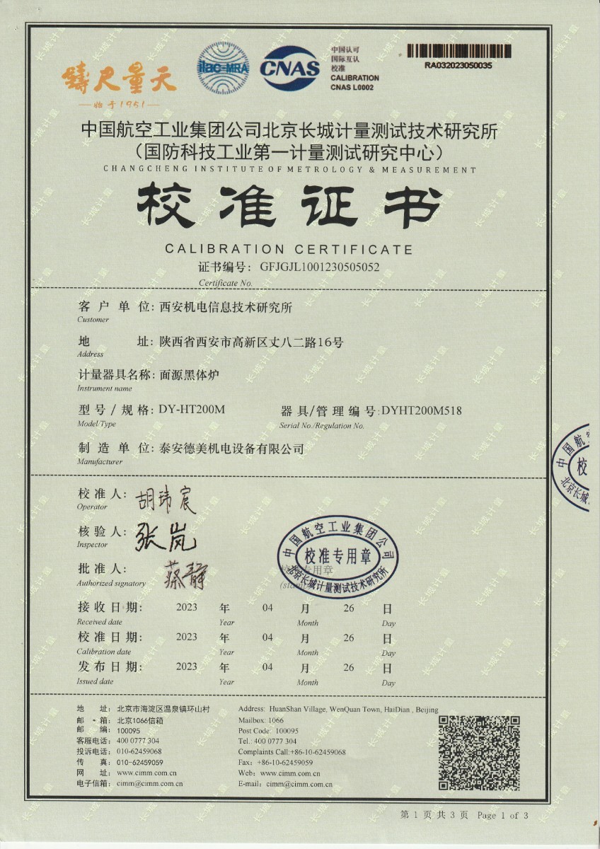 西安機電信息技術(shù)研究所 面源黑體爐 校準證書 2023-5-18 本文被閱讀 12951 次