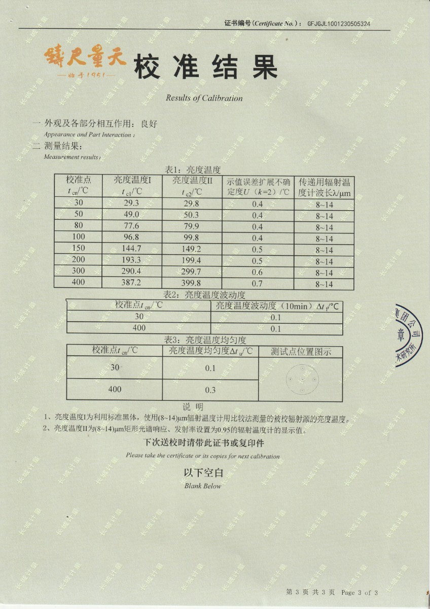 | 上一條:西安機(jī)電信息技術(shù)研究所 面源黑體爐 校準(zhǔn)證書 | 下一條:智能干體儀(六位半精度)校準(zhǔn)證書 |
