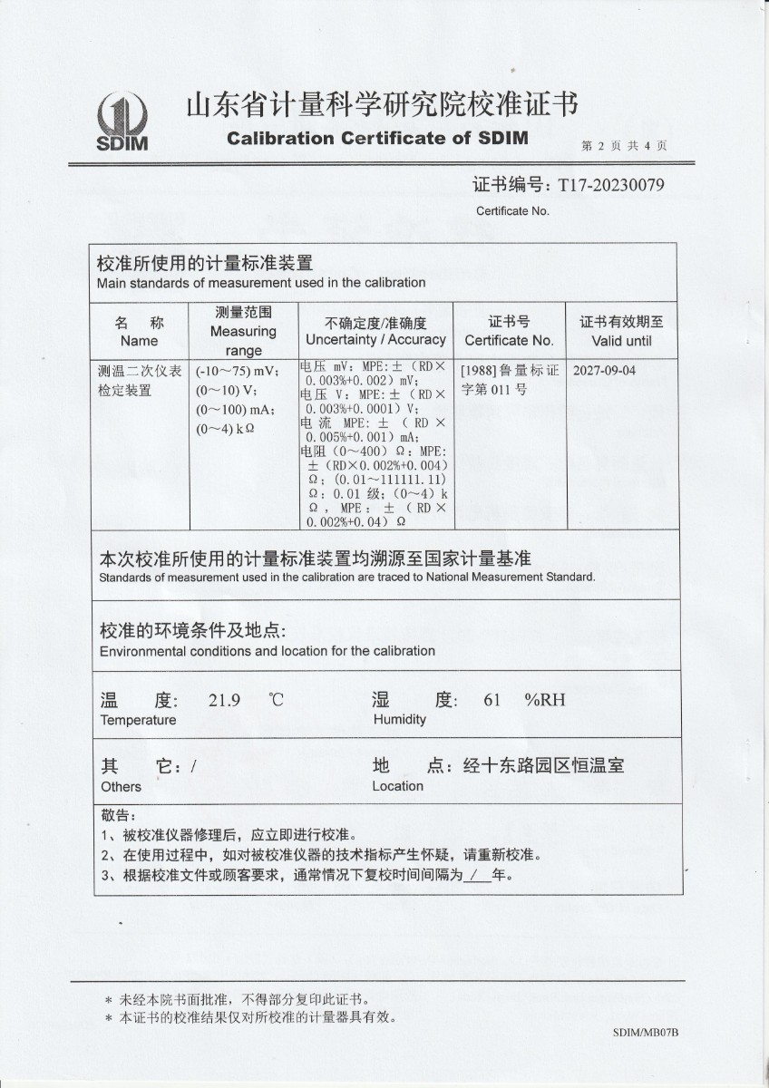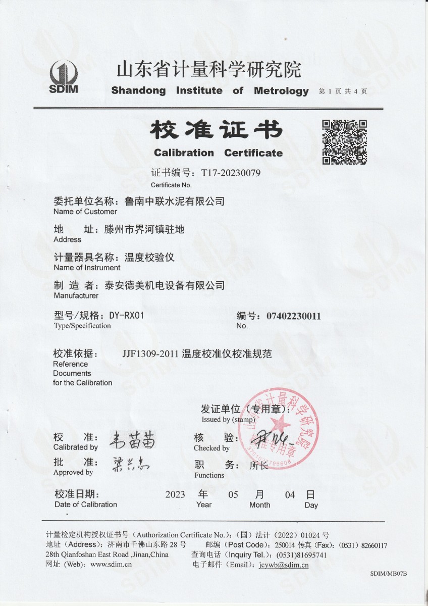 | 上一條:魯南中聯(lián)水泥有限公司 高精度數(shù)字溫度計(jì) 校準(zhǔn)證書 | 下一條:智能干體儀(六位半精度)校準(zhǔn)證書 |
