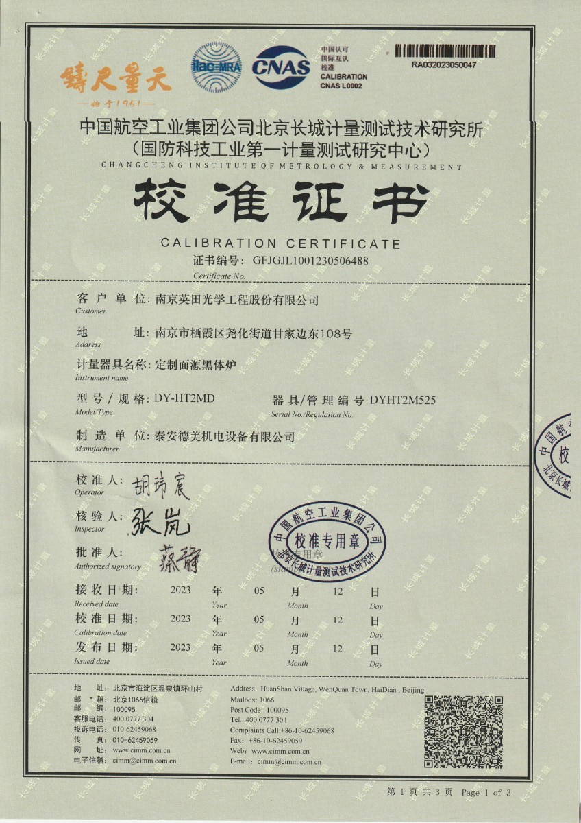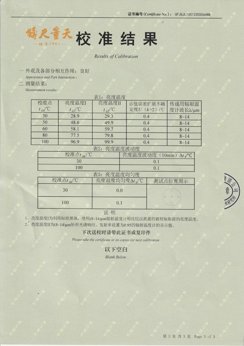 | 上一條:魯南中聯(lián)水泥有限公司 干體式溫度校準器 校準證書 | 下一條:智能干體儀(六位半精度)校準證書 |