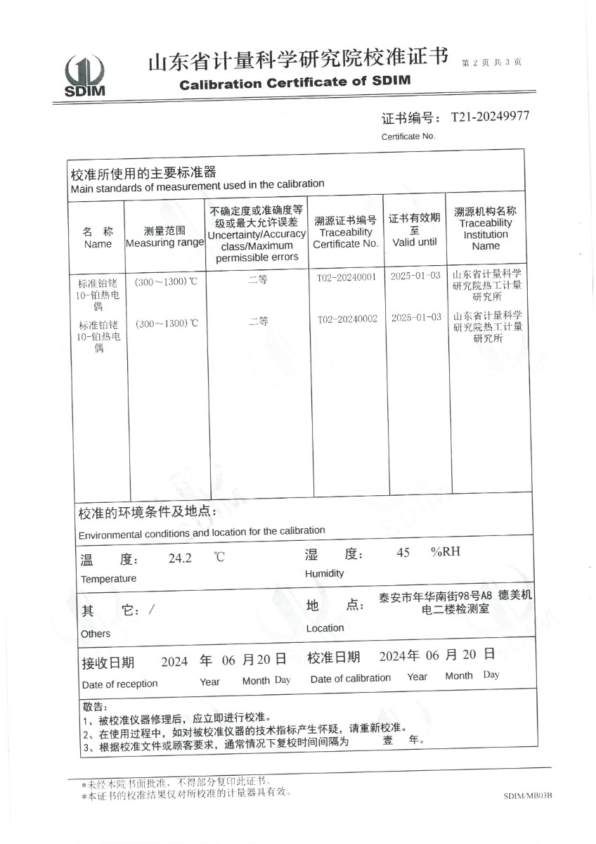 廉金屬熱電偶檢定爐(300~1200℃)校準(zhǔn)證書 2024-6-26 本文被閱讀 6014 次