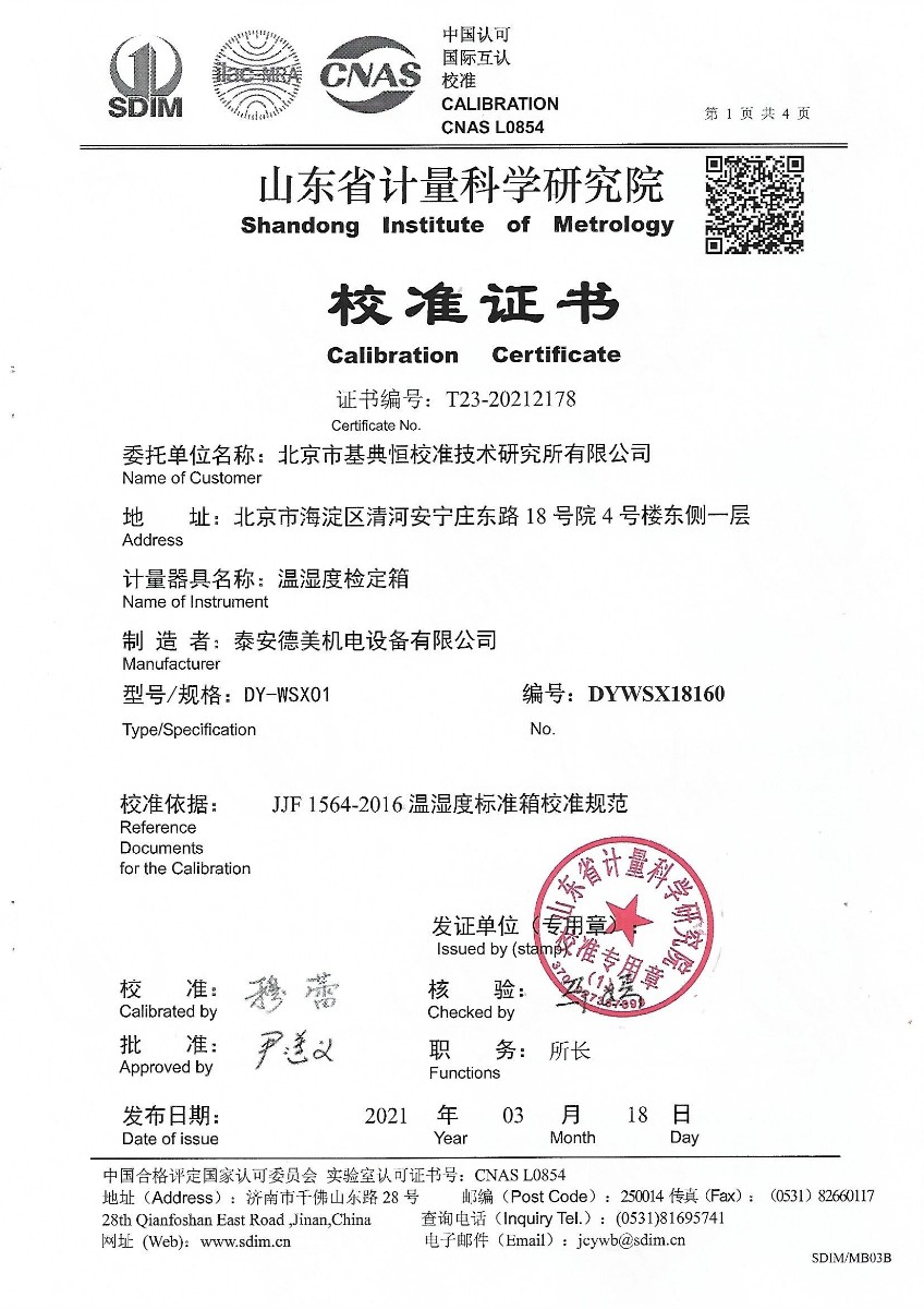 北京市基典恒校準技術研究所有限公司-溫濕度檢定箱 2021-3-29 本文被閱讀 14365 次