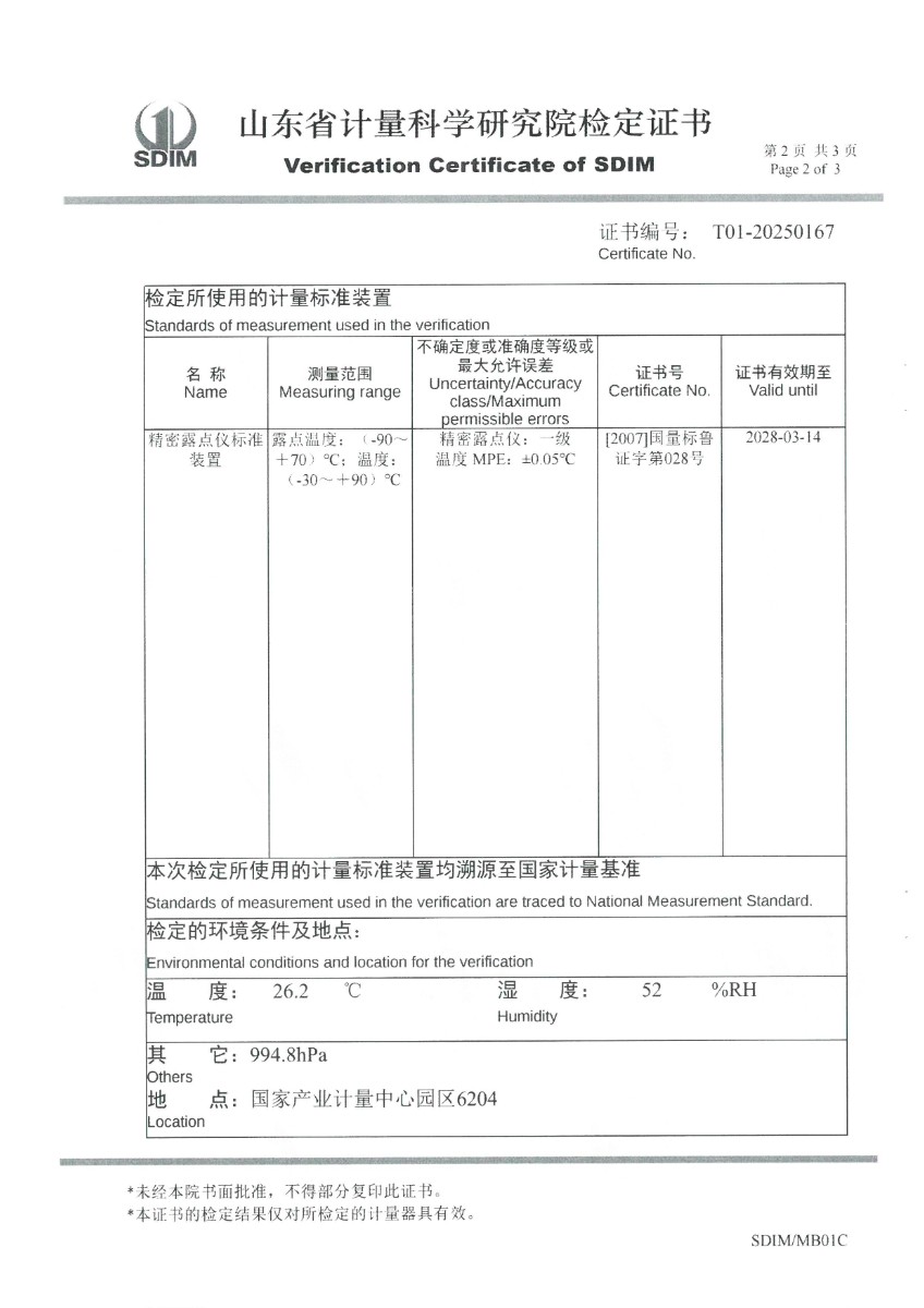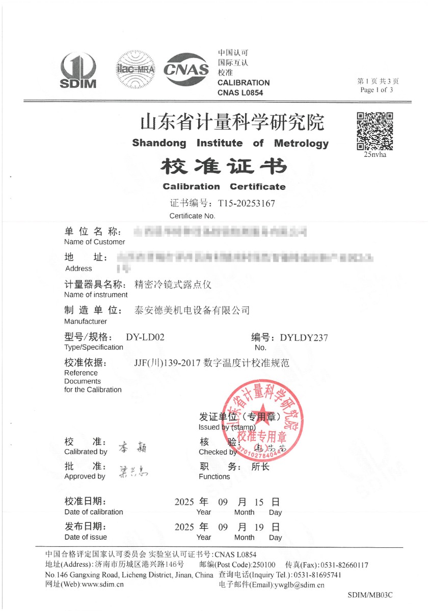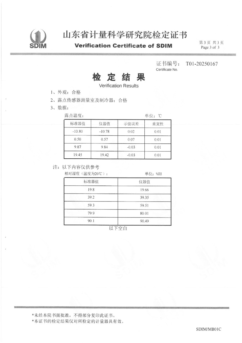 冷鏡式露點儀檢定、校準證書 2025-9-23 本文被閱讀 1351 次