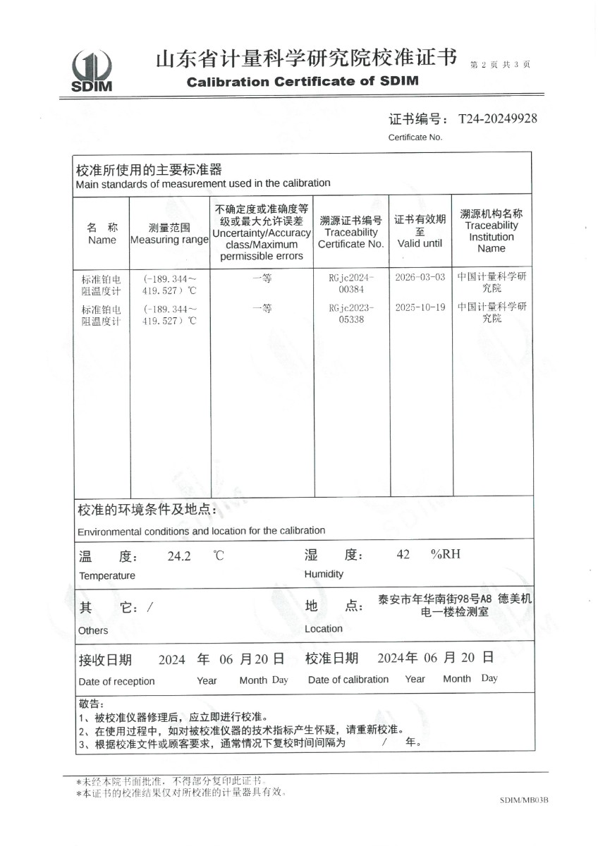 制冷恒溫槽(-50~95℃)校準(zhǔn)證書 2024-6-26 本文被閱讀 6078 次