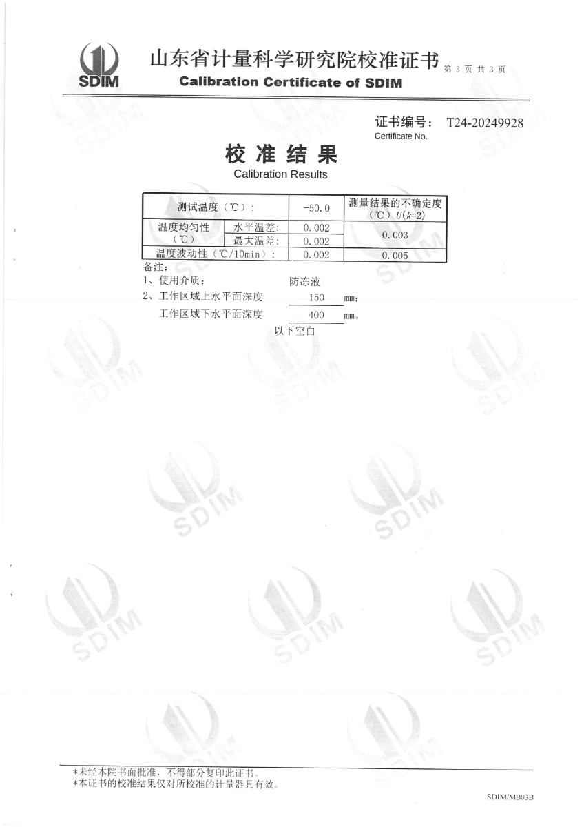 制冷恒溫槽(-50~95℃)校準(zhǔn)證書